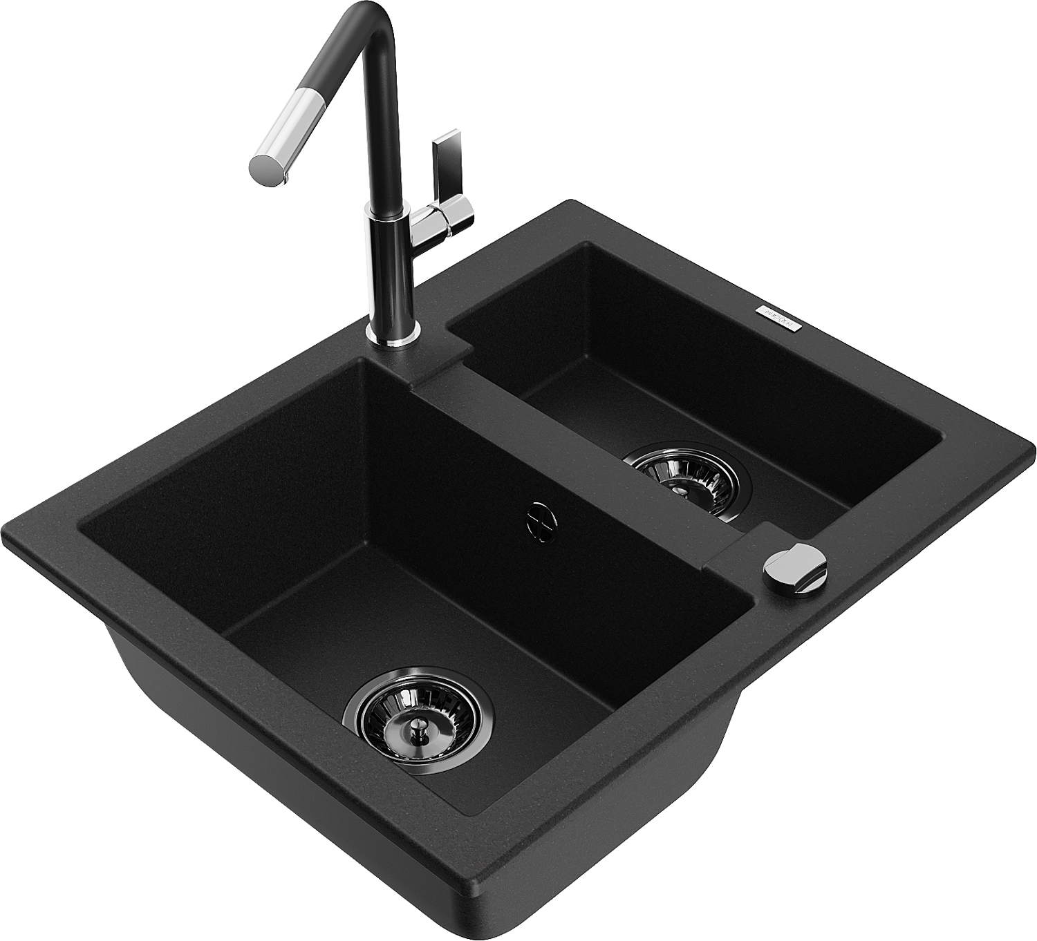 Mexen Carlos granitový dřez 1,5-komorový s kuchyňskou baterií Flora, černý - 6518-77-670401-07-B