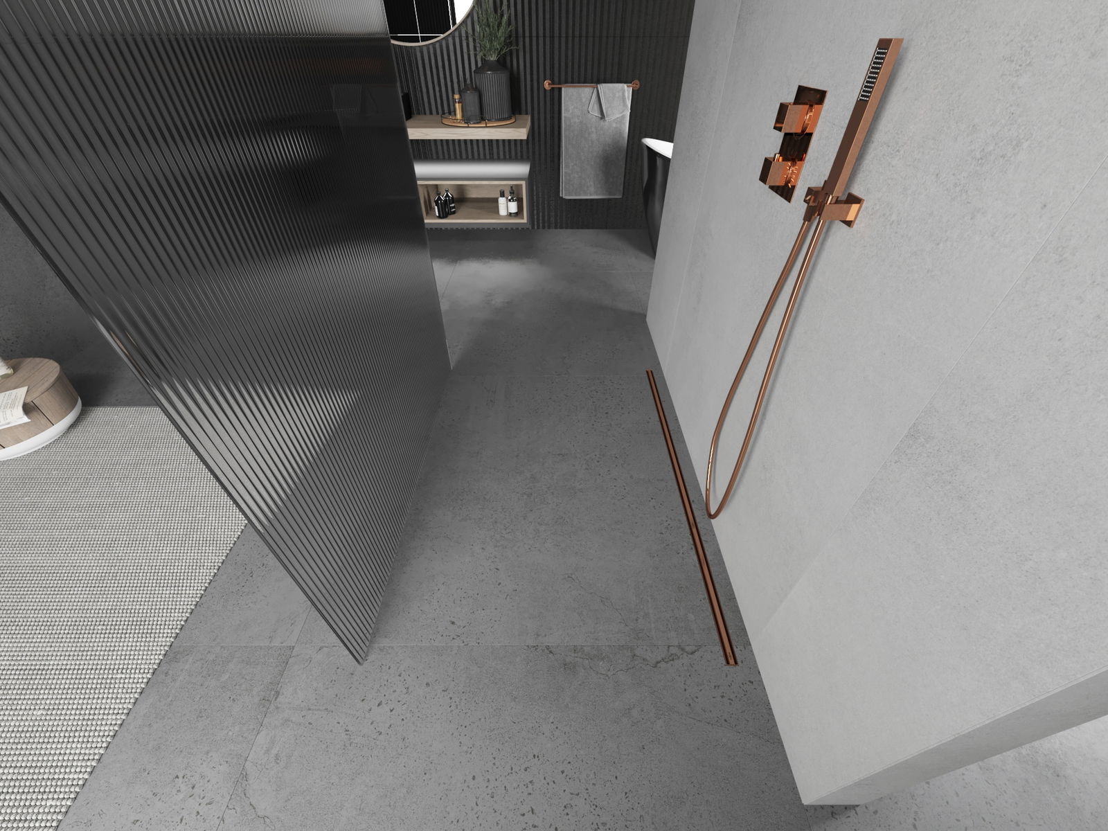Mexen Kioto volně stojící sprchová stěna 140 x 200 cm, pruhy 8 mm, růžové zlato - 800-140-002-60-09