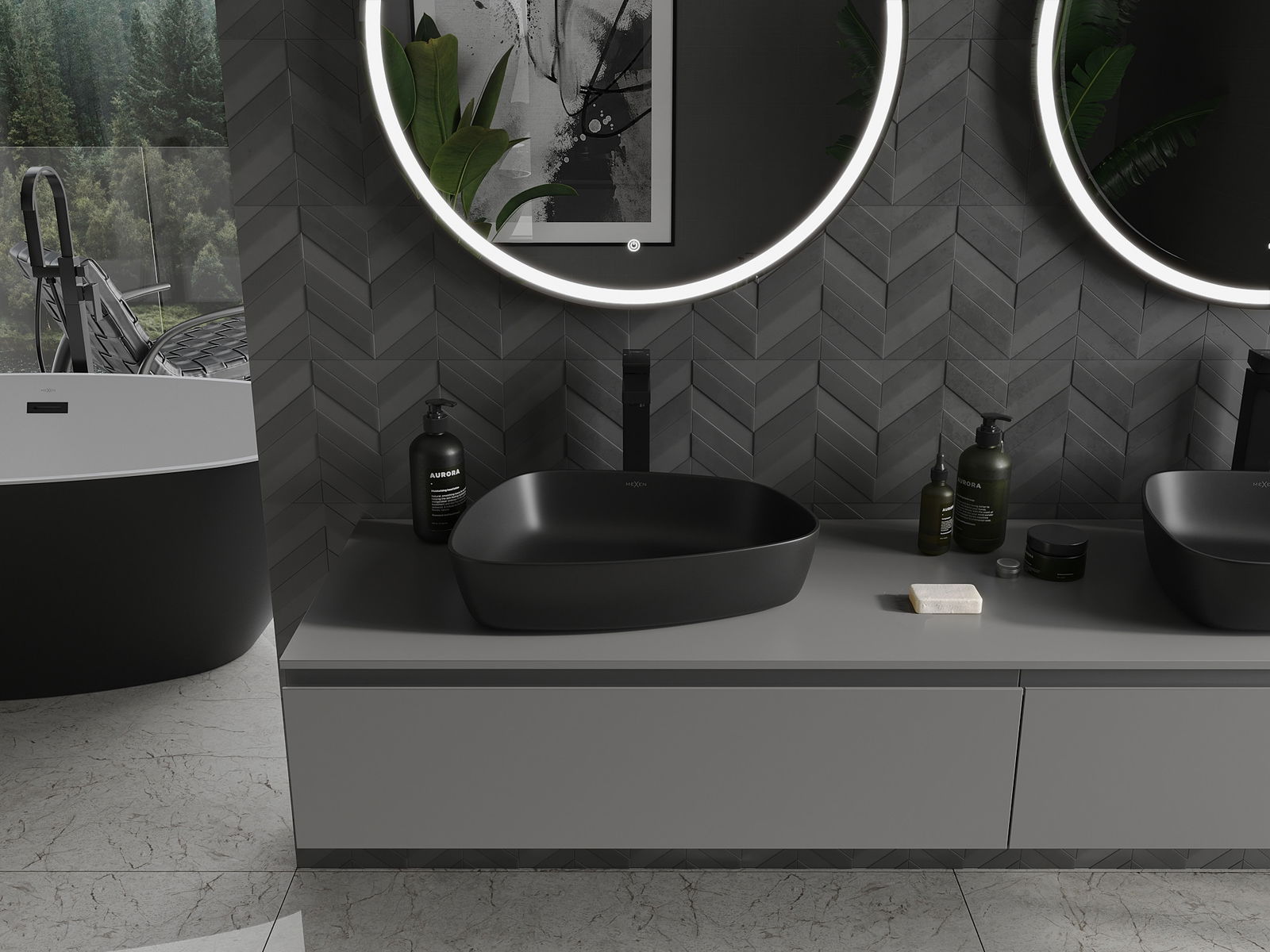 Matný povrch keramiky dokonale podtrhuje charakter barvy produktu, dodává mu jedinečnou a výraznou povrchovou úpravu. Jemná struktura matné keramiky přináší do koupelny eleganci, čímž vytváří estetický prostor.