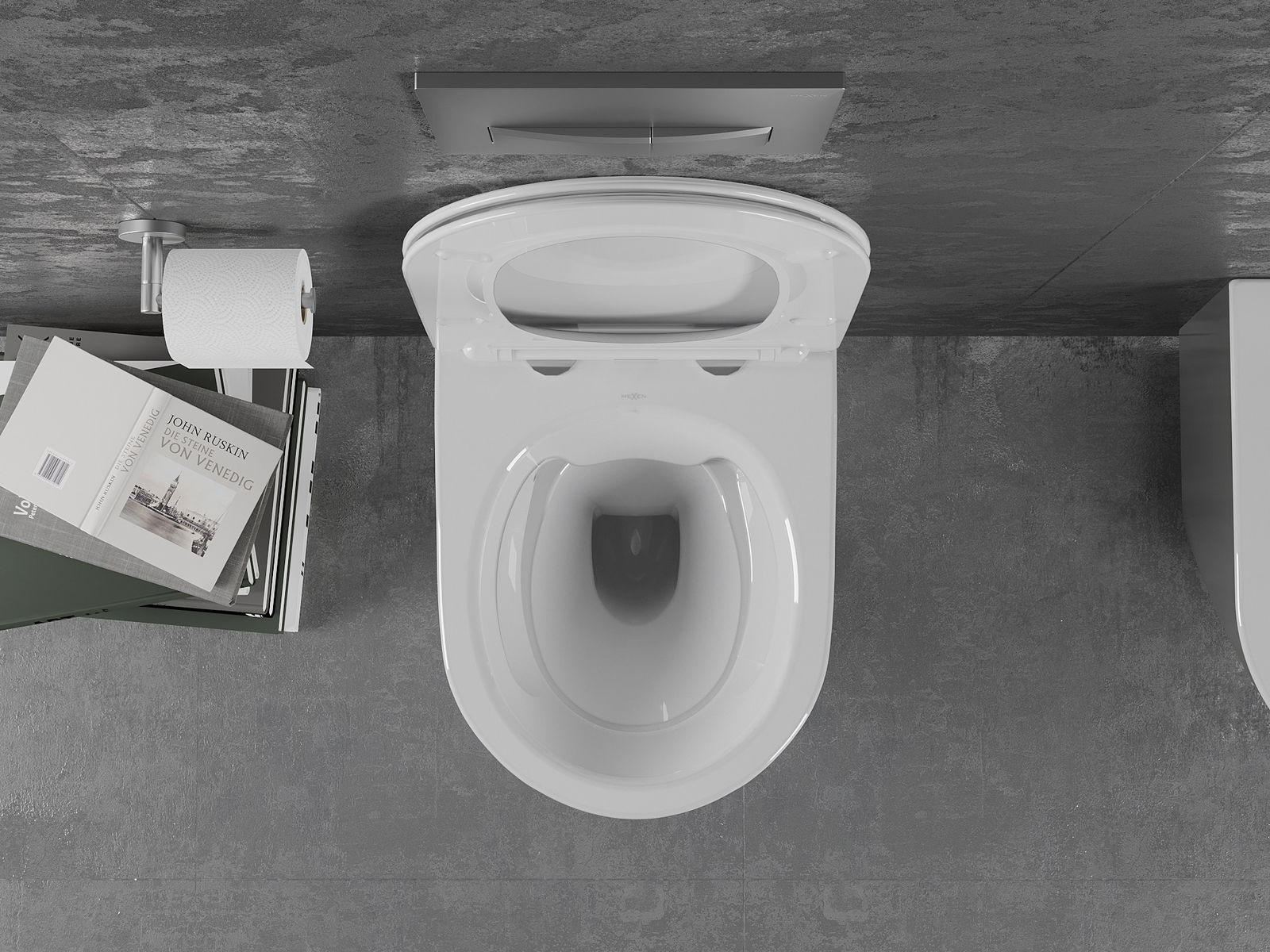 Technologie Rimless zajišťuje volný tok vody v celé komoře, což usnadňuje udržování wc mísy v čistotě