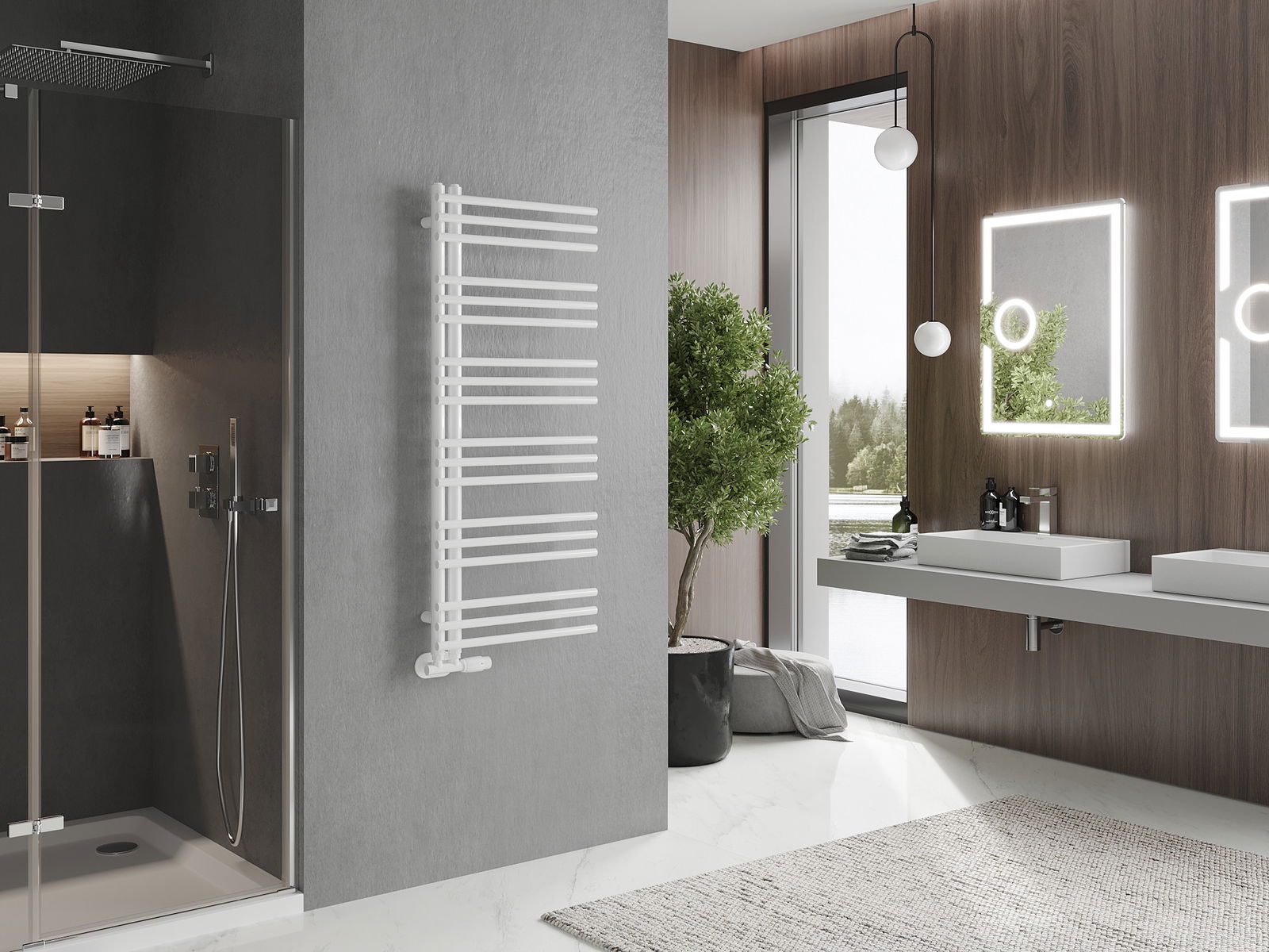 Kompletní: závěsy, montážní sada, zaslepovací zátky a odvzdušňovač