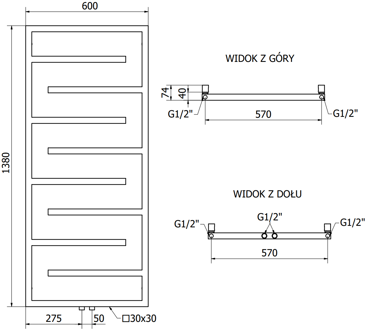- 4xG ½″ shora a zespodu z pravé nebo levé strany