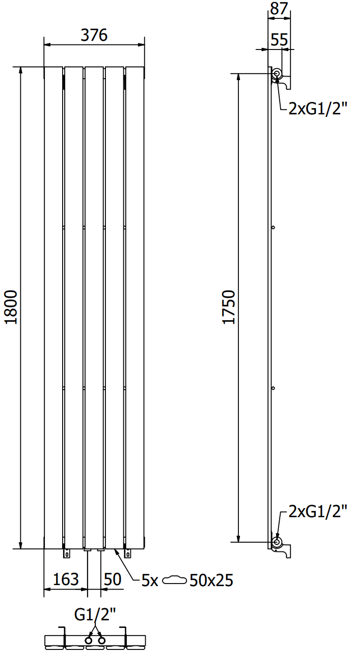 - 4xG ½″ nahoře a dole z pravé nebo levé strany