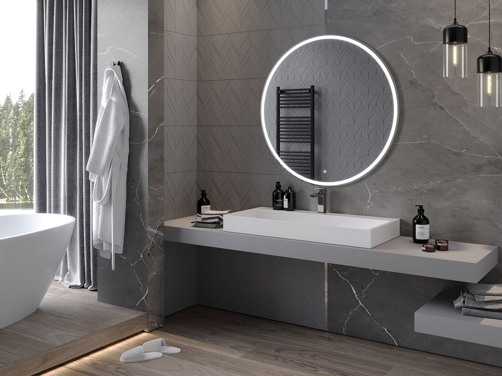 Osvětlení zrcadla lze snadno a pohodlně spustit dotykem spínače na ploše zrcadla. To umožňuje rychlé osvětlení, aniž by bylo nutné sáhnout po tradičním spínači osvětlení umístěném dále.