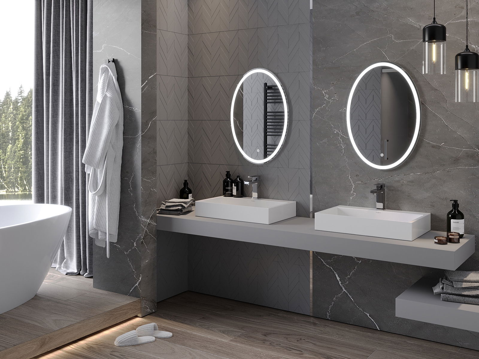 LED podsvícení u zrcadla je praktický prvek, který usnadňuje každodenní péči díky možnosti ideálního osvětlení obličeje. Podsvícení dodává koupelně moderní vzhled a zdůrazňuje její elegantní výzdobu.