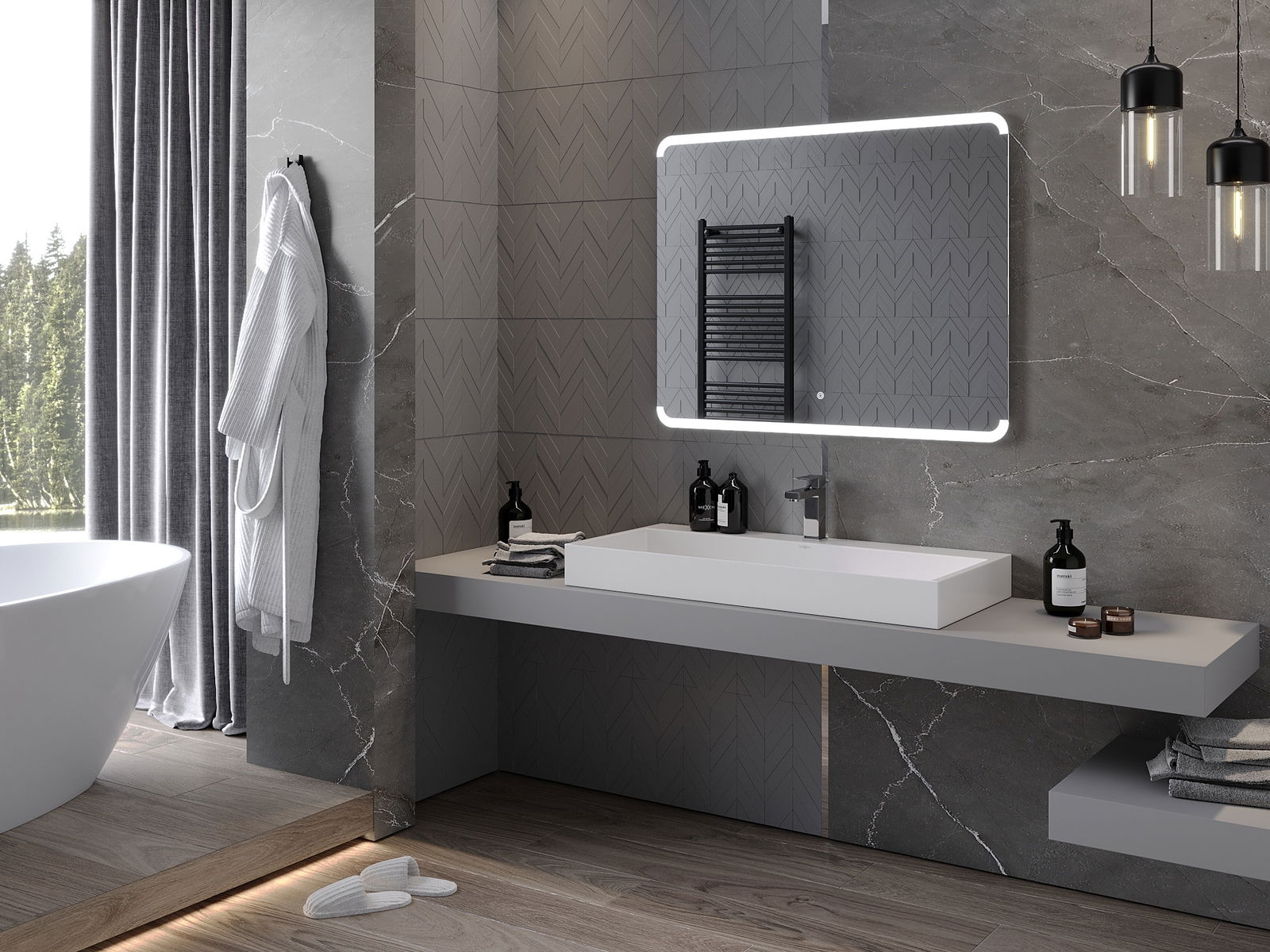 LED podsvícení u zrcadla je praktický prvek, který usnadňuje každodenní péči díky možnosti ideálního osvětlení obličeje. Podsvícení dodává koupelně moderní vzhled a zdůrazňuje její elegantní výzdobu.