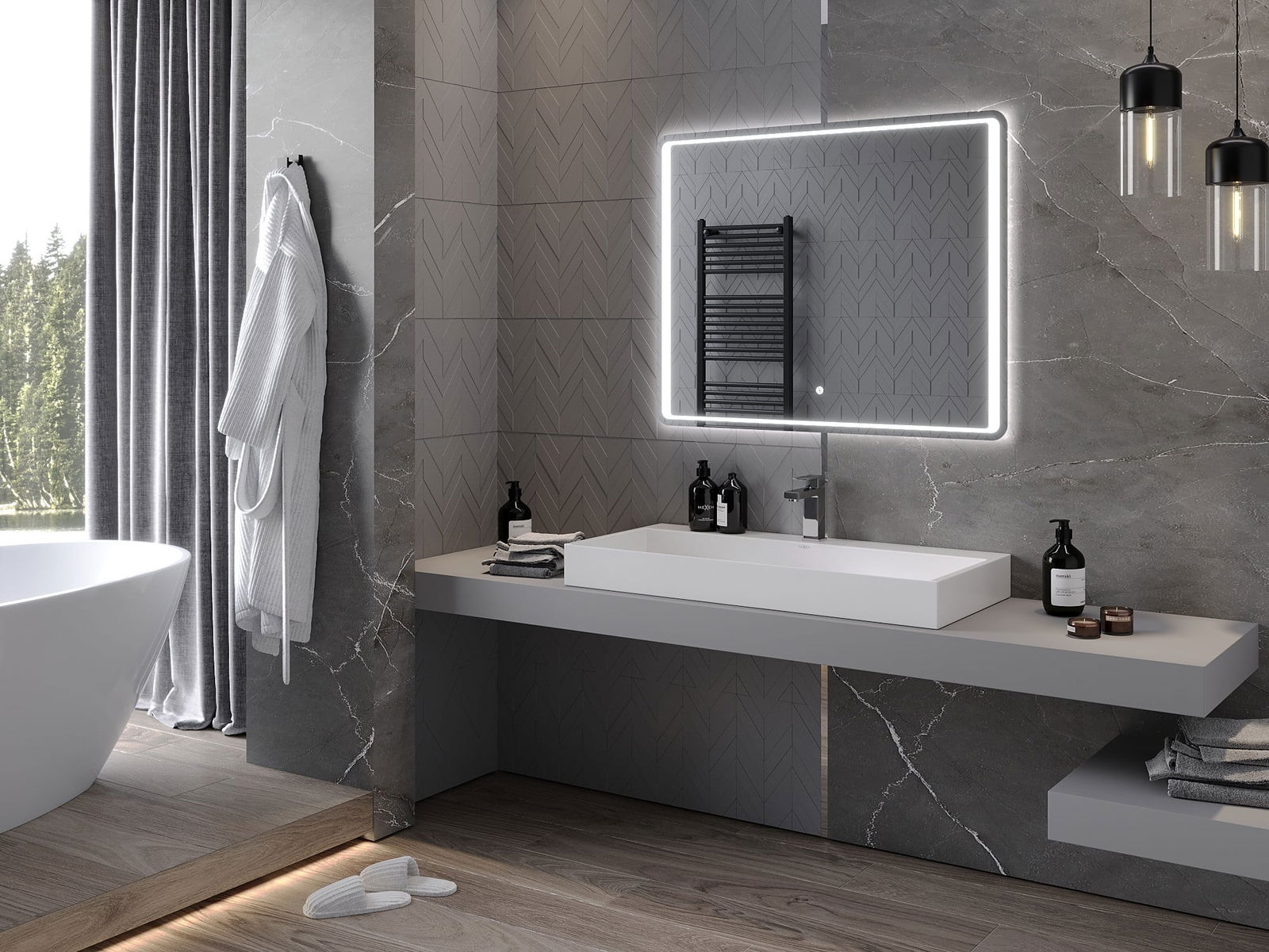 LED podsvícení u zrcadla je praktický prvek, který usnadňuje každodenní péči díky možnosti ideálního osvětlení obličeje. Podsvícení dodává koupelně moderní vzhled a zdůrazňuje její elegantní výzdobu.
