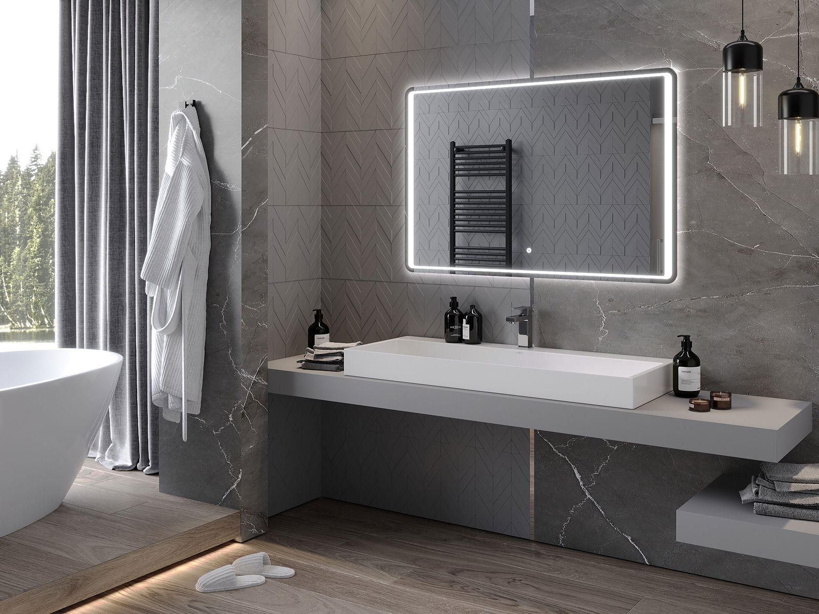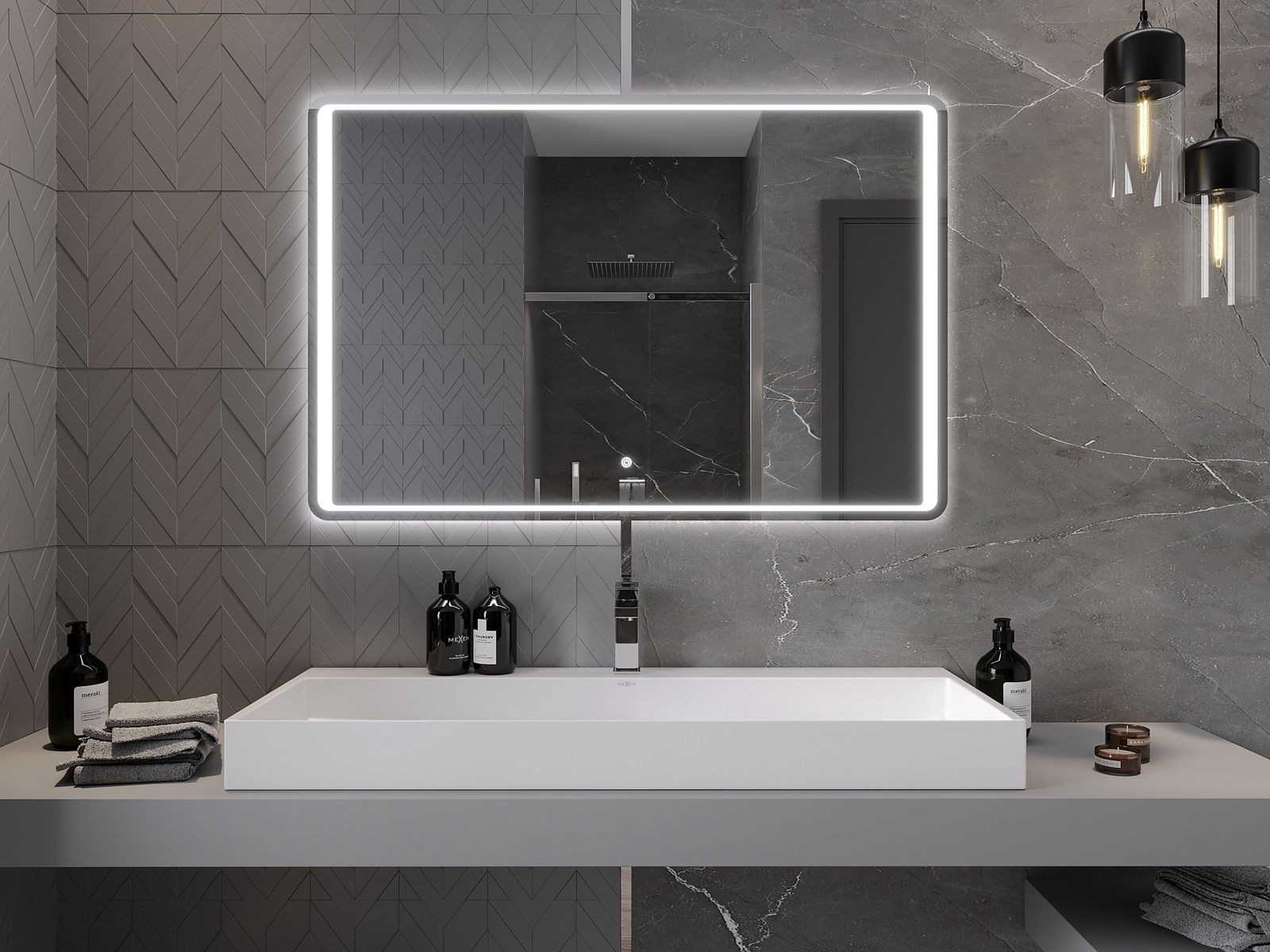 LED podsvícení u zrcadla je praktický prvek, který usnadňuje každodenní péči díky možnosti ideálního osvětlení obličeje. Podsvícení dodává koupelně moderní vzhled a zdůrazňuje její elegantní výzdobu.