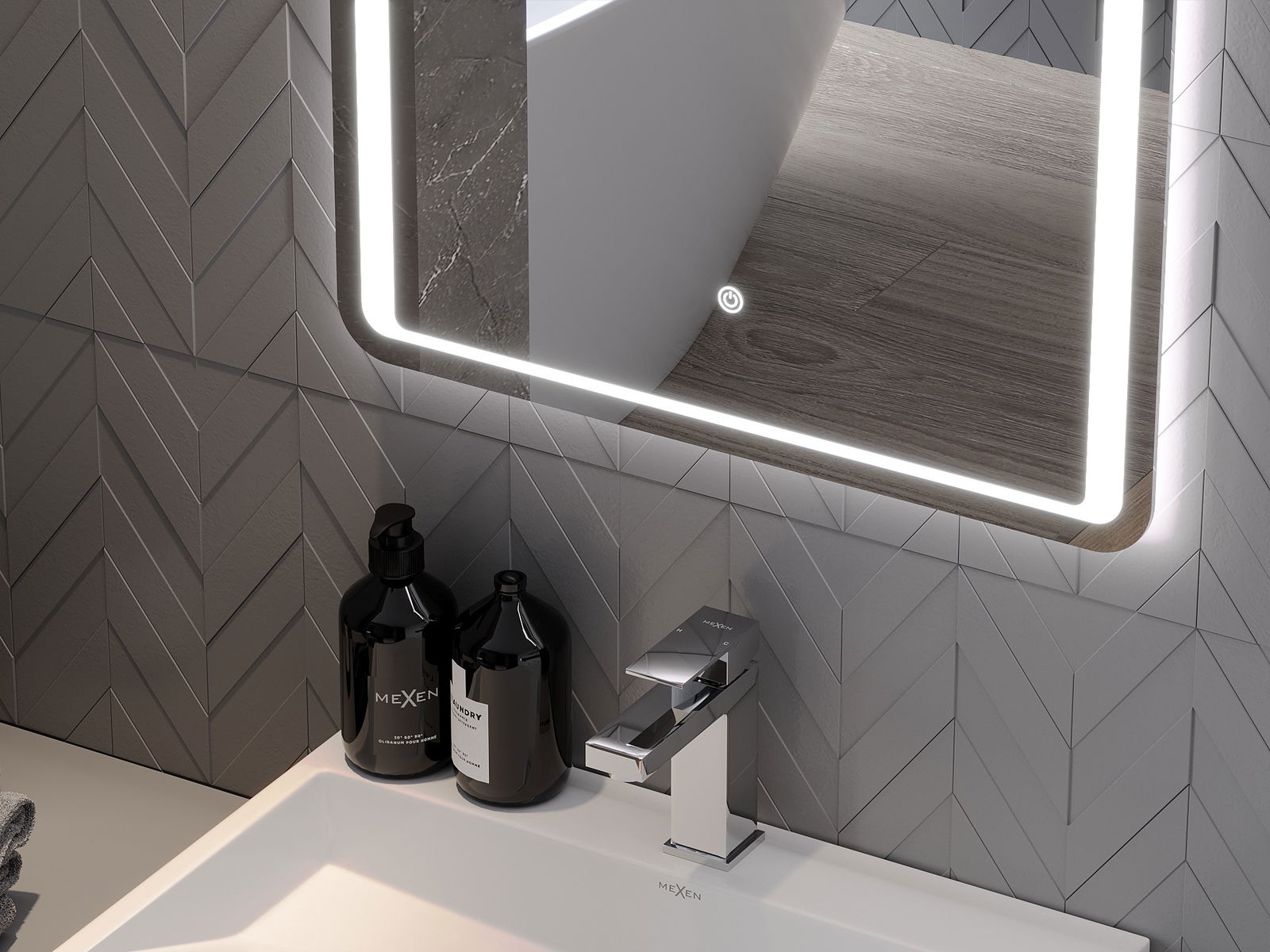 Osvětlení zrcadla lze snadno a pohodlně spustit dotykem spínače na ploše zrcadla. To umožňuje rychlé osvětlení, aniž by bylo nutné sáhnout po tradičním spínači osvětlení umístěném dále.