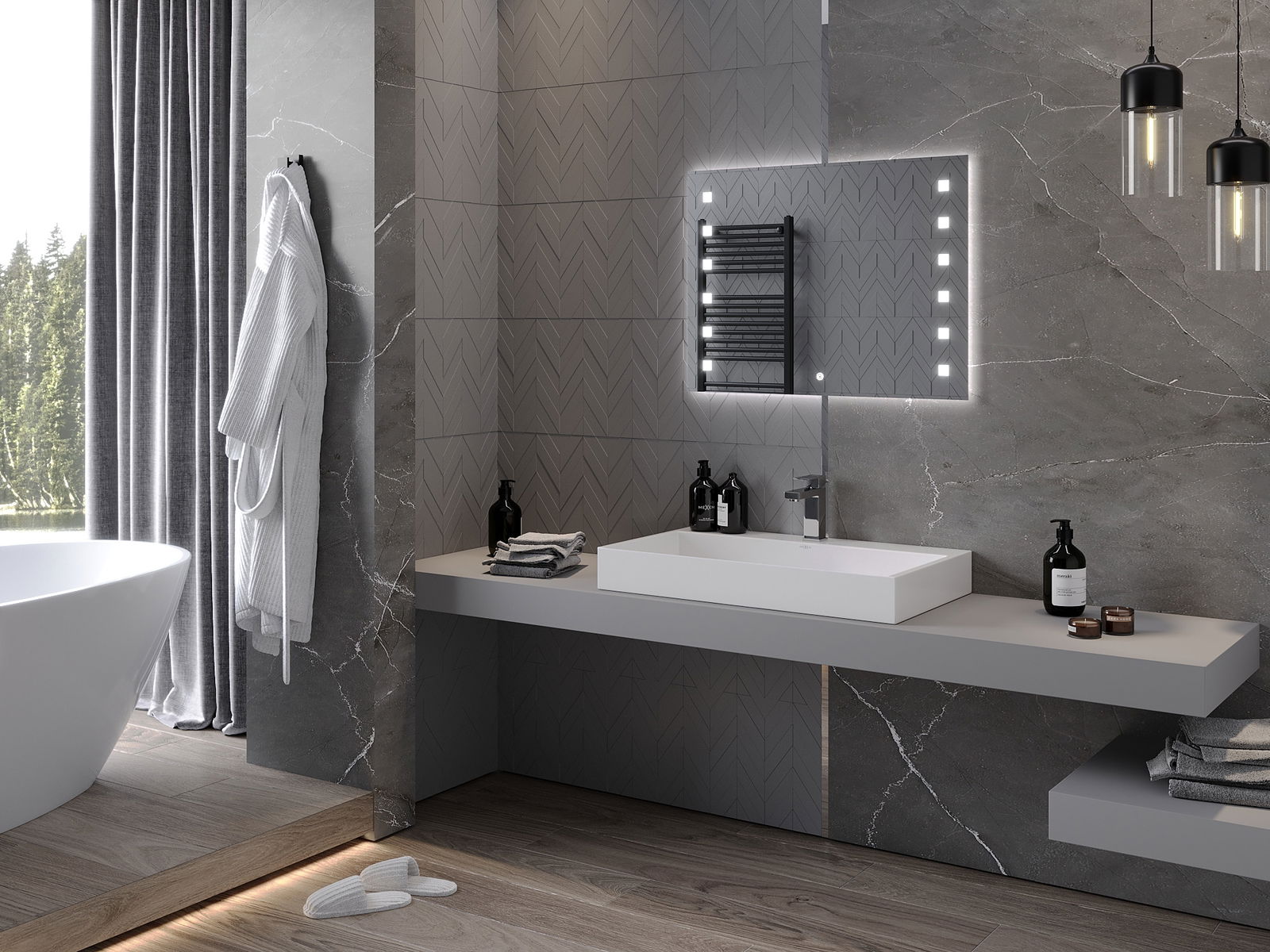 LED podsvícení u zrcadla je praktický prvek, který usnadňuje každodenní péči díky možnosti ideálního osvětlení obličeje. Podsvícení dodává koupelně moderní vzhled a zdůrazňuje její elegantní výzdobu.