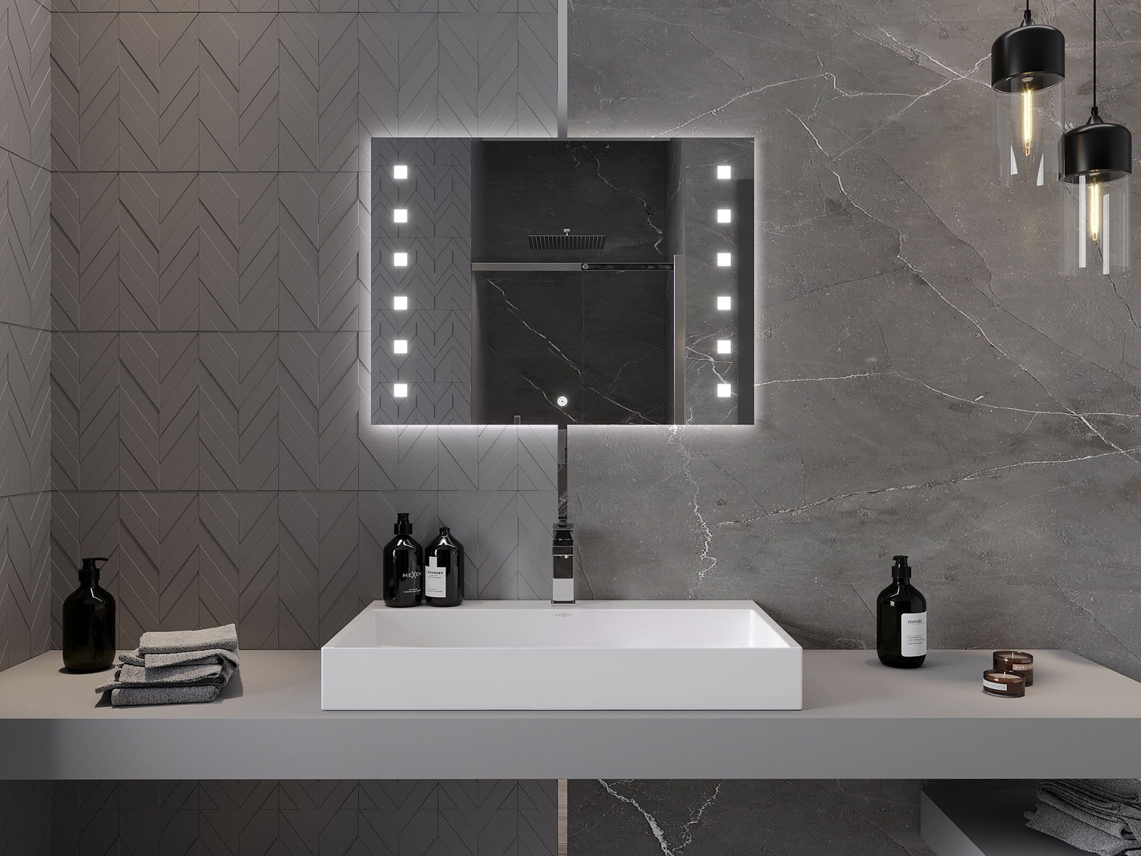 Osvětlení zrcadla lze snadno a pohodlně spustit dotykem spínače na ploše zrcadla. To umožňuje rychlé osvětlení, aniž by bylo nutné sáhnout po tradičním spínači osvětlení umístěném dále.