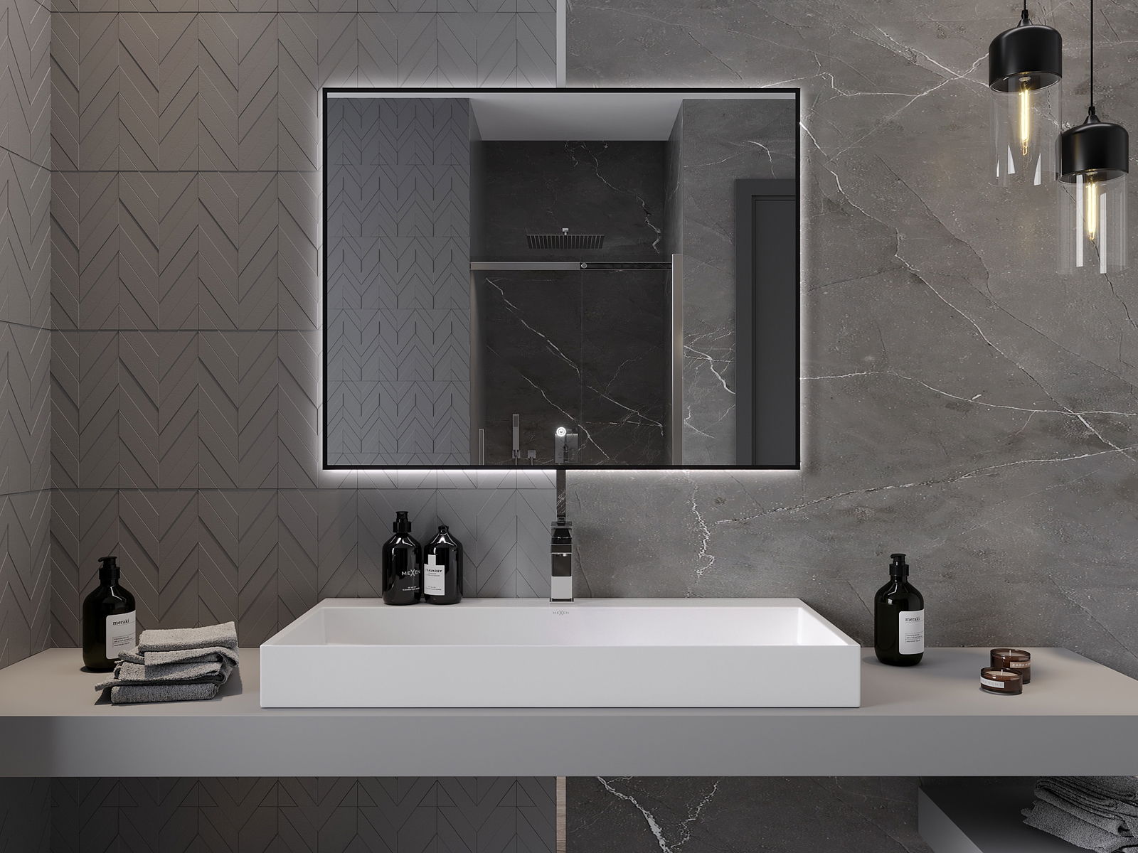 LED podsvícení u zrcadla je praktický prvek, který usnadňuje každodenní péči díky možnosti ideálního osvětlení obličeje. Podsvícení dodává koupelně moderní vzhled a zdůrazňuje její elegantní výzdobu.