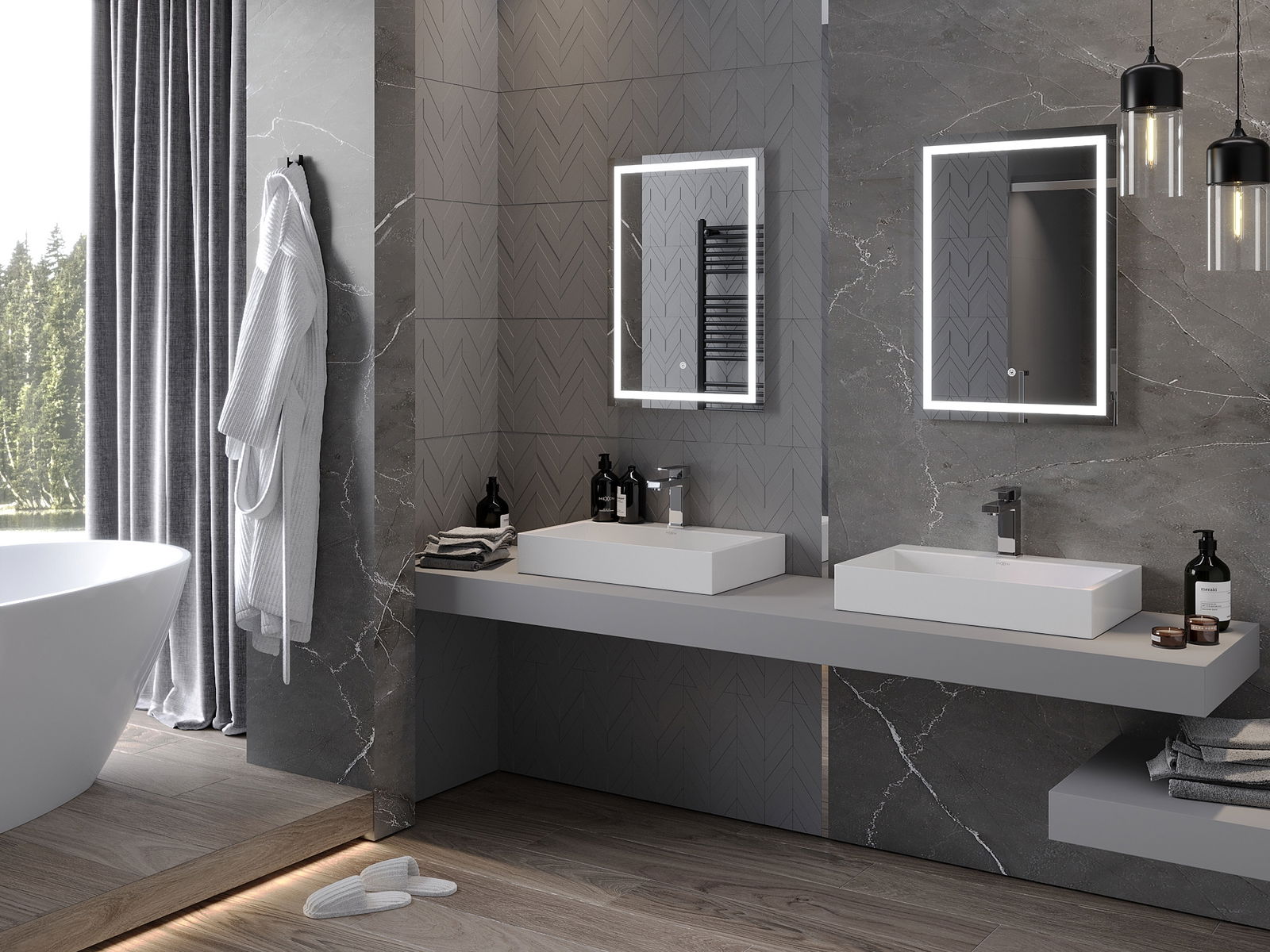 Osvětlení zrcadla lze snadno a pohodlně spustit dotykem spínače na ploše zrcadla. To umožňuje rychlé osvětlení, aniž by bylo nutné sáhnout po tradičním spínači osvětlení umístěném dále.