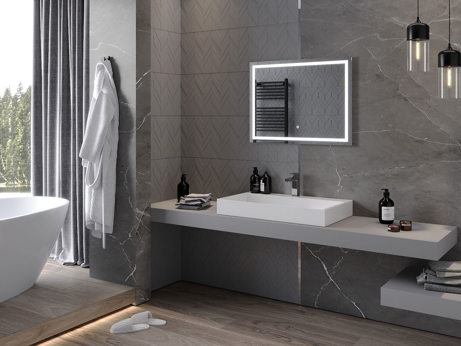 Osvětlení zrcadla lze snadno a pohodlně spustit dotykem spínače na ploše zrcadla. To umožňuje rychlé osvětlení, aniž by bylo nutné sáhnout po tradičním spínači osvětlení umístěném dále.