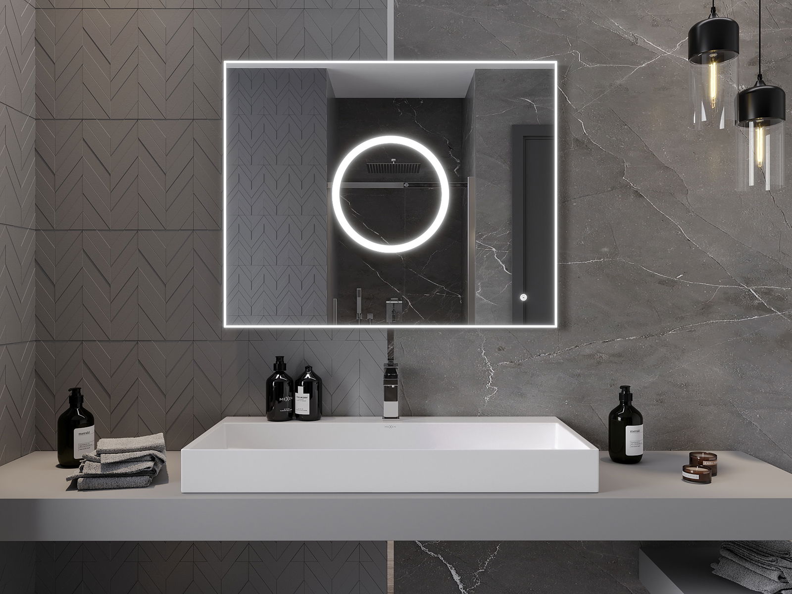 Osvětlení zrcadla lze snadno a pohodlně spustit dotykem spínače na ploše zrcadla. To umožňuje rychlé osvětlení, aniž by bylo nutné sáhnout po tradičním spínači osvětlení umístěném dále.