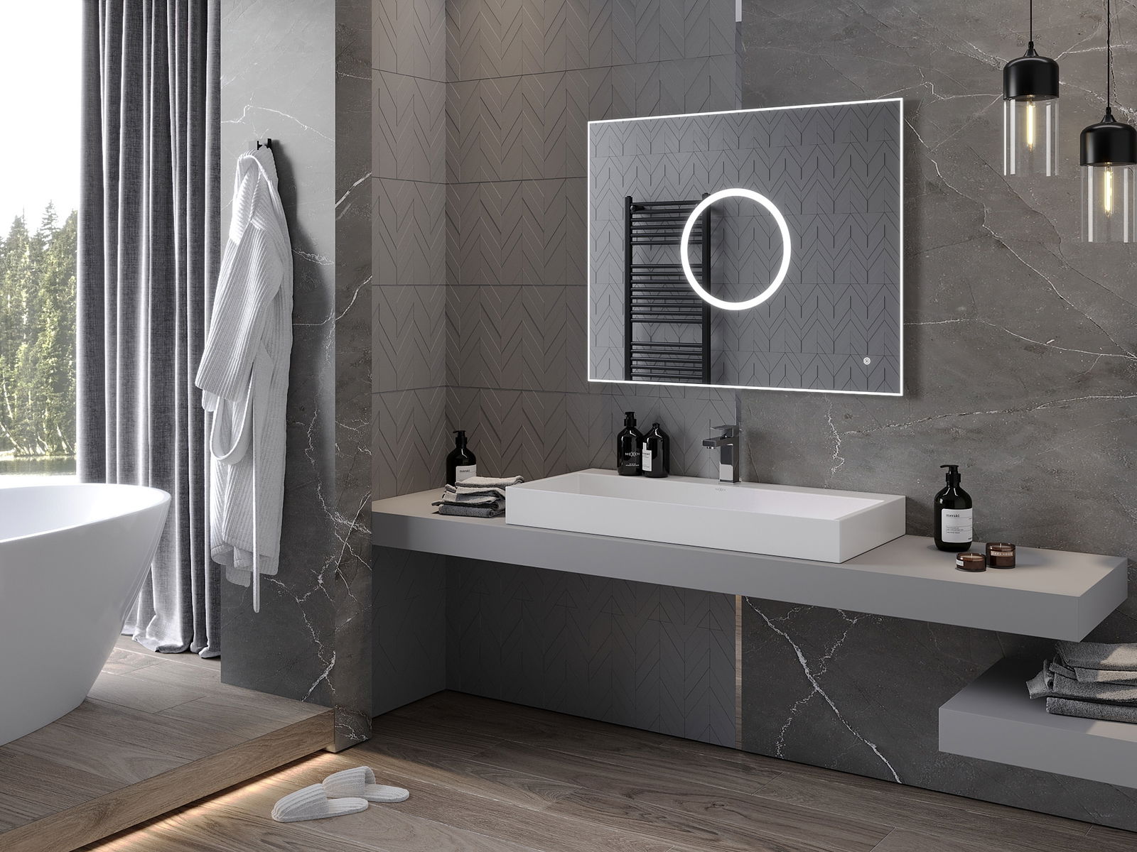 LED podsvícení u zrcadla je praktický prvek, který usnadňuje každodenní péči díky možnosti ideálního osvětlení obličeje. Podsvícení dodává koupelně moderní vzhled a zdůrazňuje její elegantní výzdobu.
