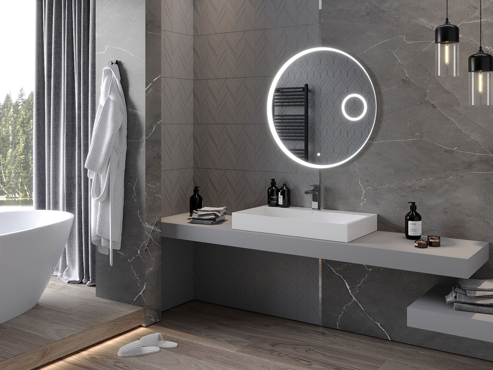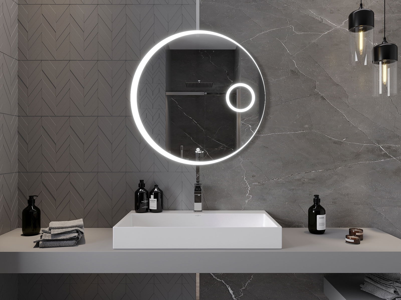 LED podsvícení u zrcadla je praktický prvek, který usnadňuje každodenní péči díky možnosti ideálního osvětlení obličeje. Podsvícení dodává koupelně moderní vzhled a zdůrazňuje její elegantní výzdobu.