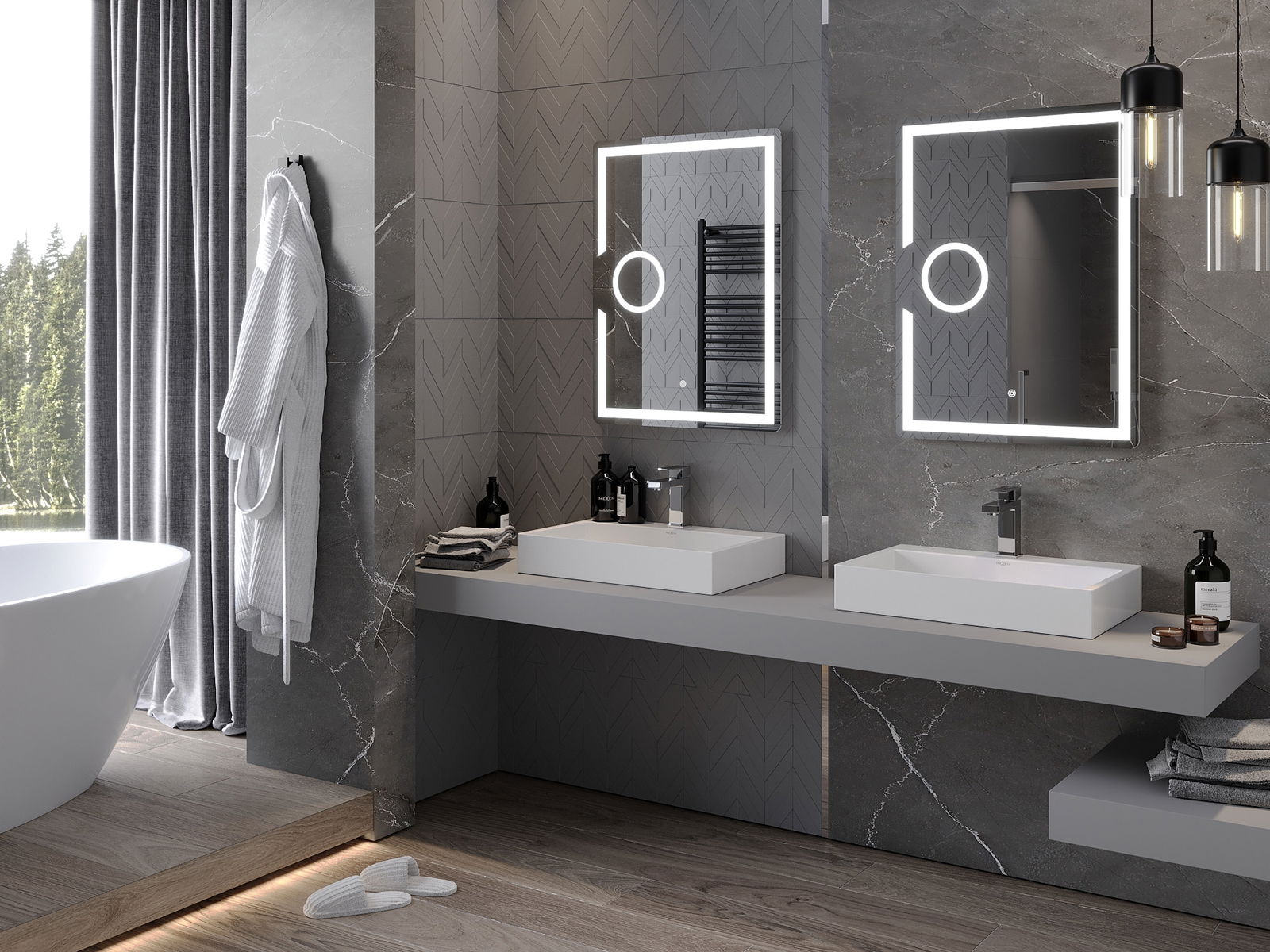 Zrcadlo bylo vybaveno LED osvětlením ve studené barvě – 6000K. Poskytuje intenzivní a výrazné osvětlení, které umožňuje vidět i ty nejmenší detaily. Dokonale podporuje každodenní péči o pleť obličeje.
