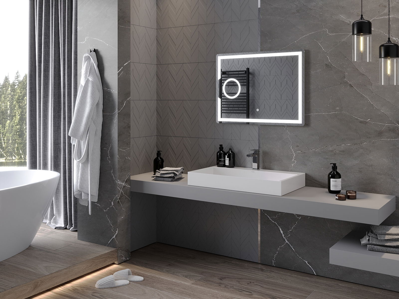 Osvětlení zrcadla lze snadno a pohodlně spustit dotykem spínače na ploše zrcadla. To umožňuje rychlé osvětlení, aniž by bylo nutné sáhnout po tradičním spínači osvětlení umístěném dále.