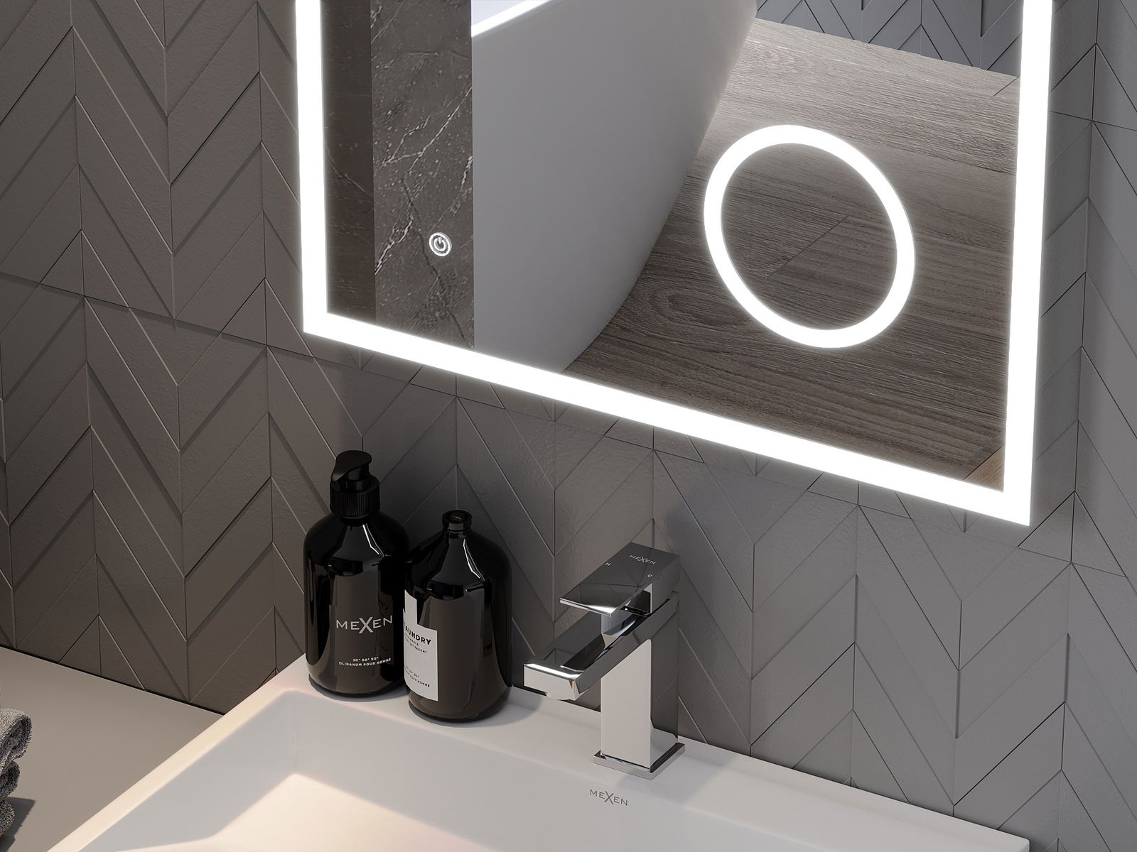Osvětlení zrcadla lze snadno a pohodlně spustit dotykem spínače na ploše zrcadla. To umožňuje rychlé osvětlení, aniž by bylo nutné sáhnout po tradičním spínači osvětlení umístěném dále.