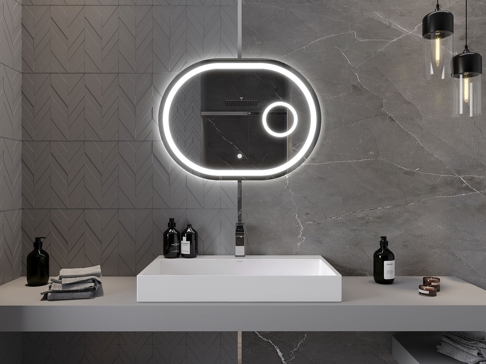 Zrcadlo bylo vybaveno LED osvětlením ve studené barvě – 6000K. Poskytuje intenzivní a výrazné osvětlení, které umožňuje vidět i ty nejmenší detaily. Dokonale podporuje každodenní péči o pleť obličeje.