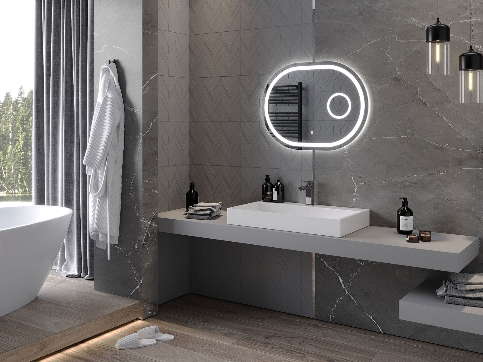 Osvětlení zrcadla lze snadno a pohodlně spustit dotykem spínače na ploše zrcadla. To umožňuje rychlé osvětlení, aniž by bylo nutné sáhnout po tradičním spínači osvětlení umístěném dále.