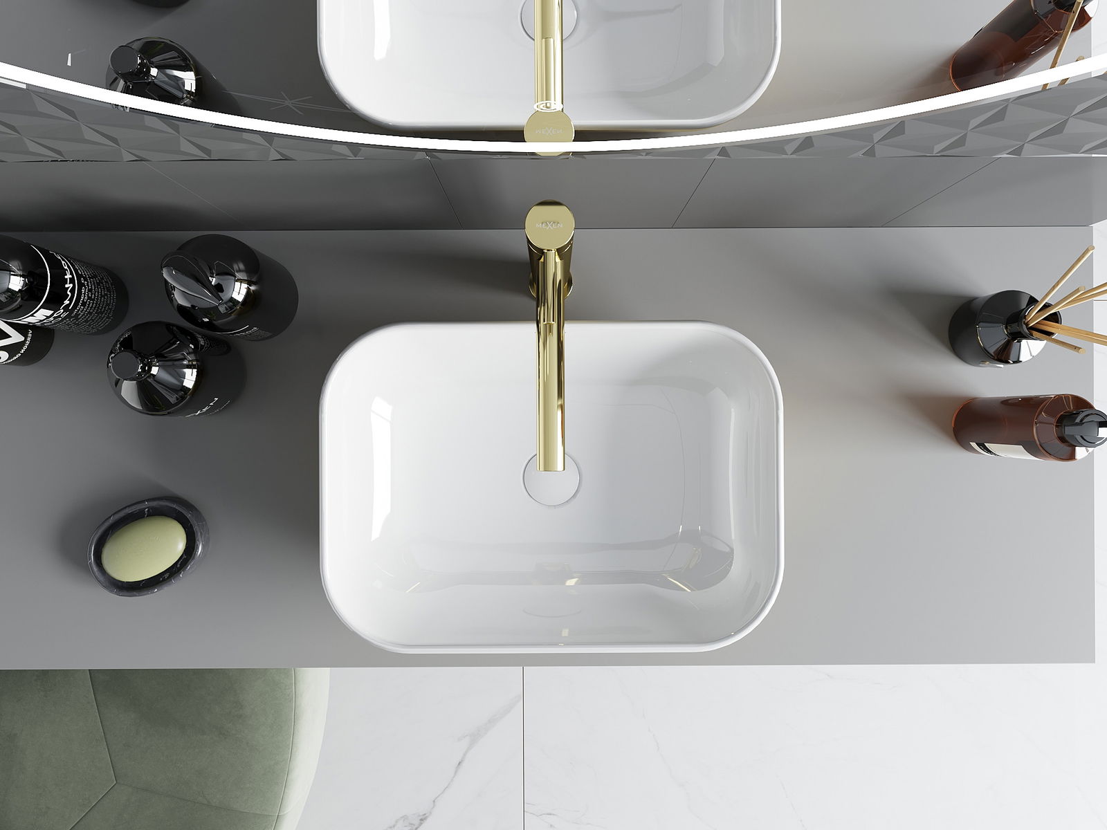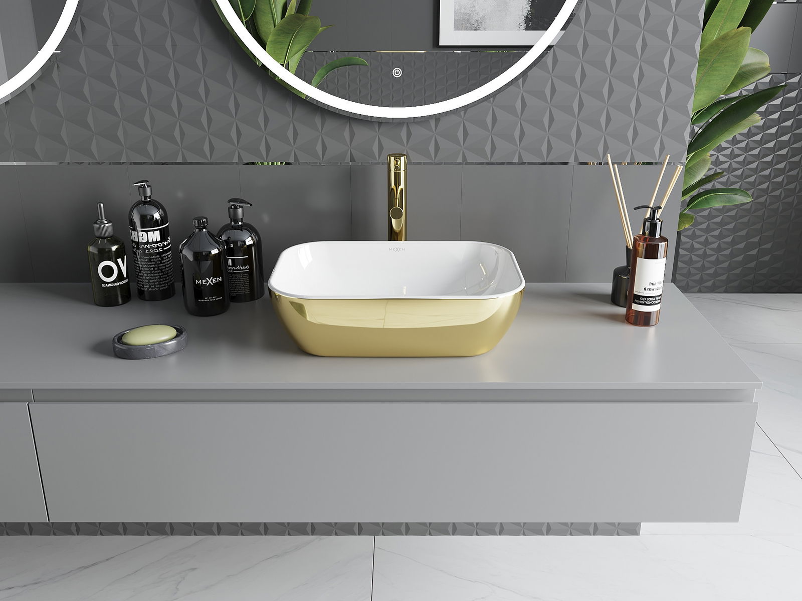 Mexen Rita umyvadlo na desku 45 x 32 cm, bílá/zlatá - 21084506