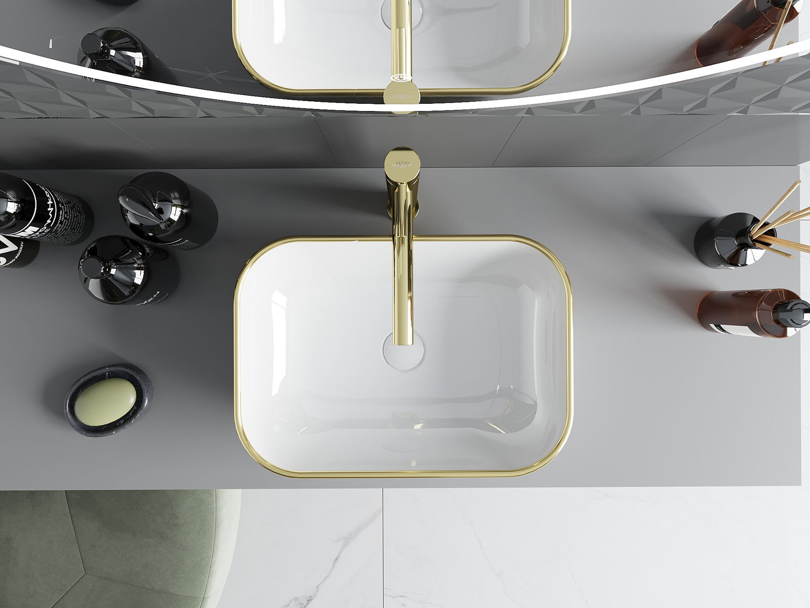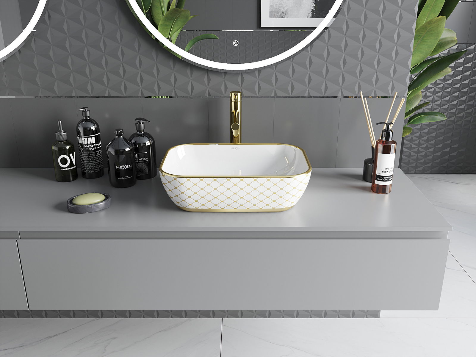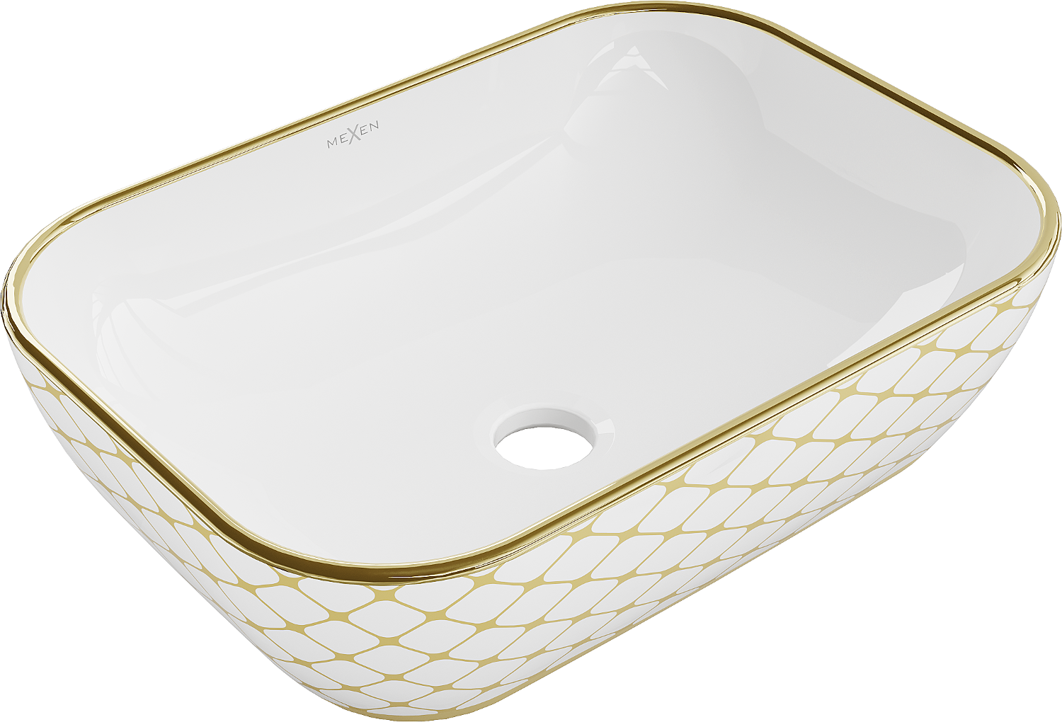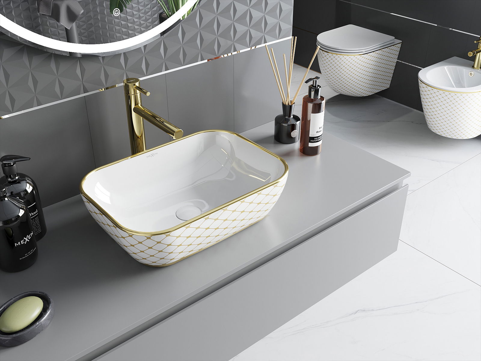 Mexen Rita umyvadlo na desku 45 x 32 cm, bílá/zlatá vzor mřížka - 21084509