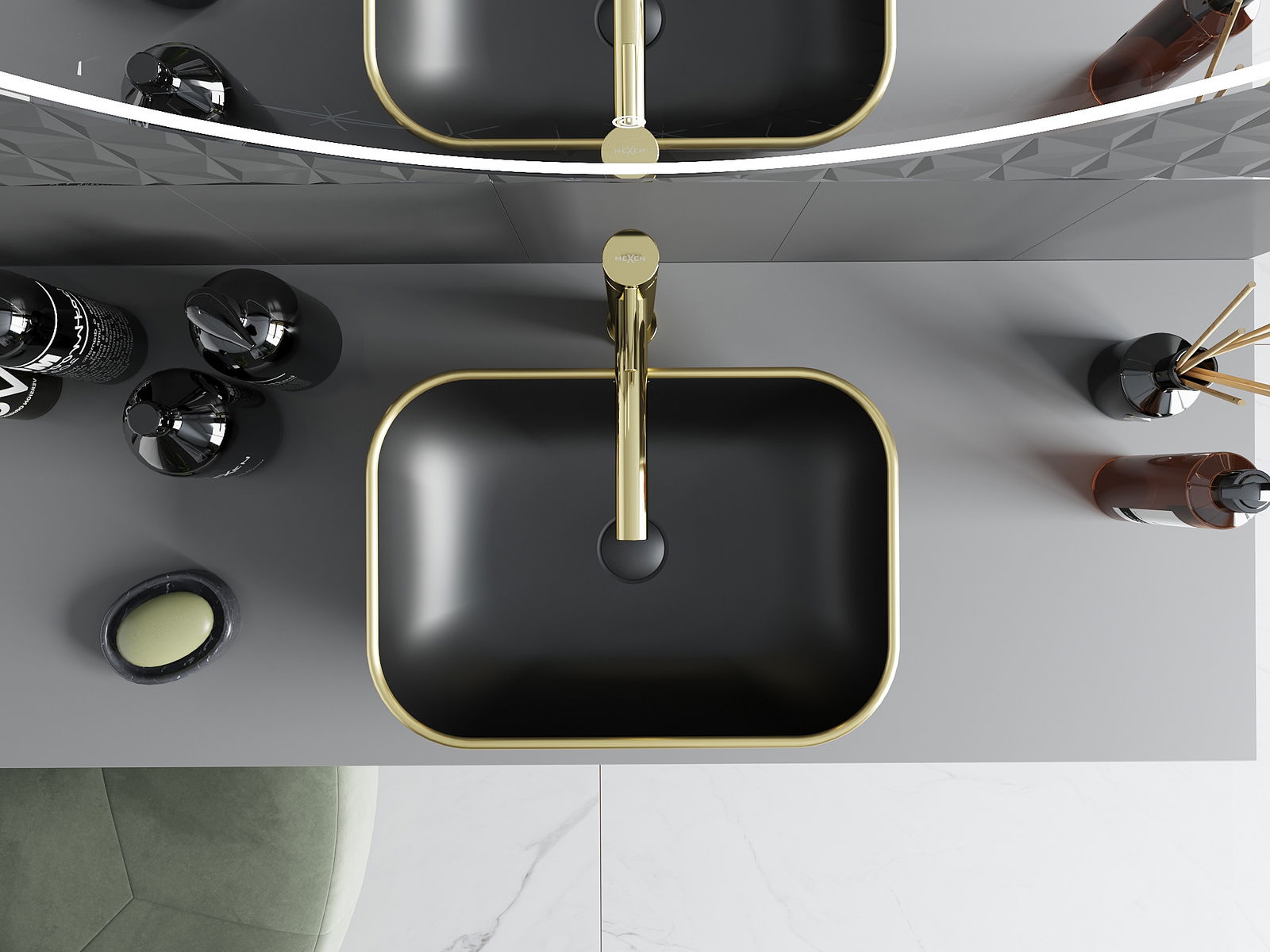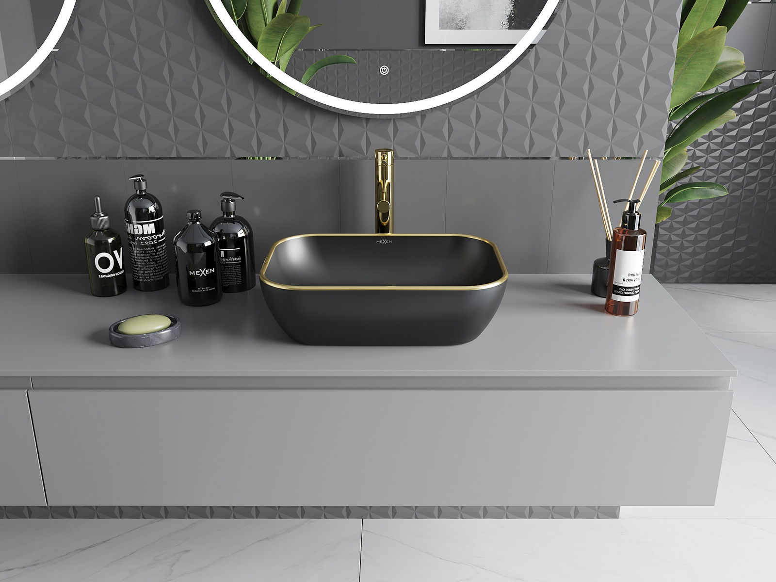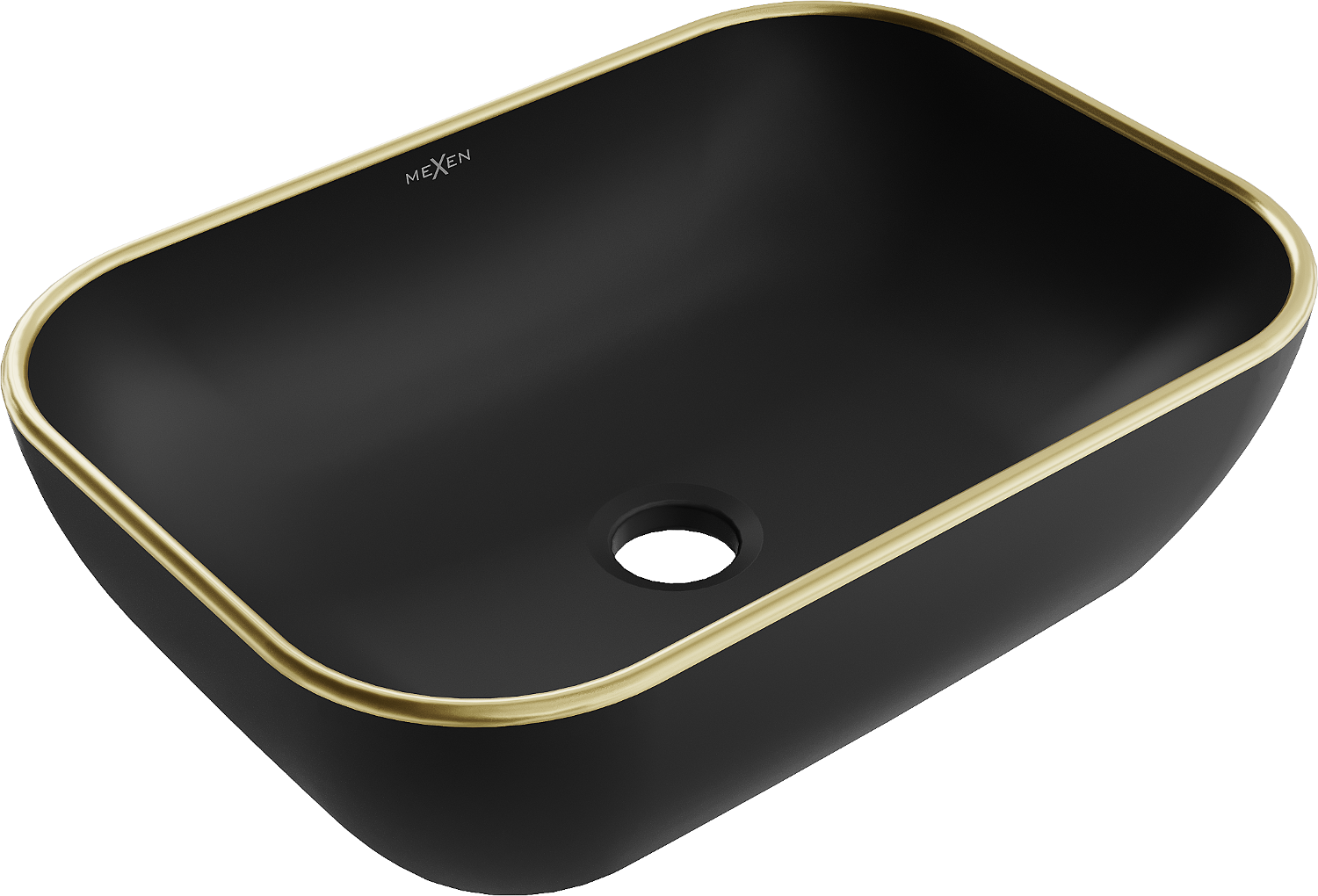 Mexen Rita umyvadlo na desku 45 x 32 cm, černá mat/zlatý okraj - 21084575