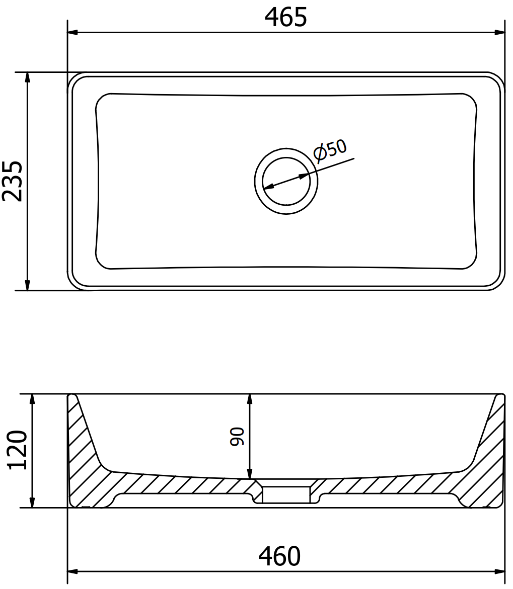 Mexen Nadia umyvadlo na desku 46 x 23 cm, bílá/černý okraj - 21614607