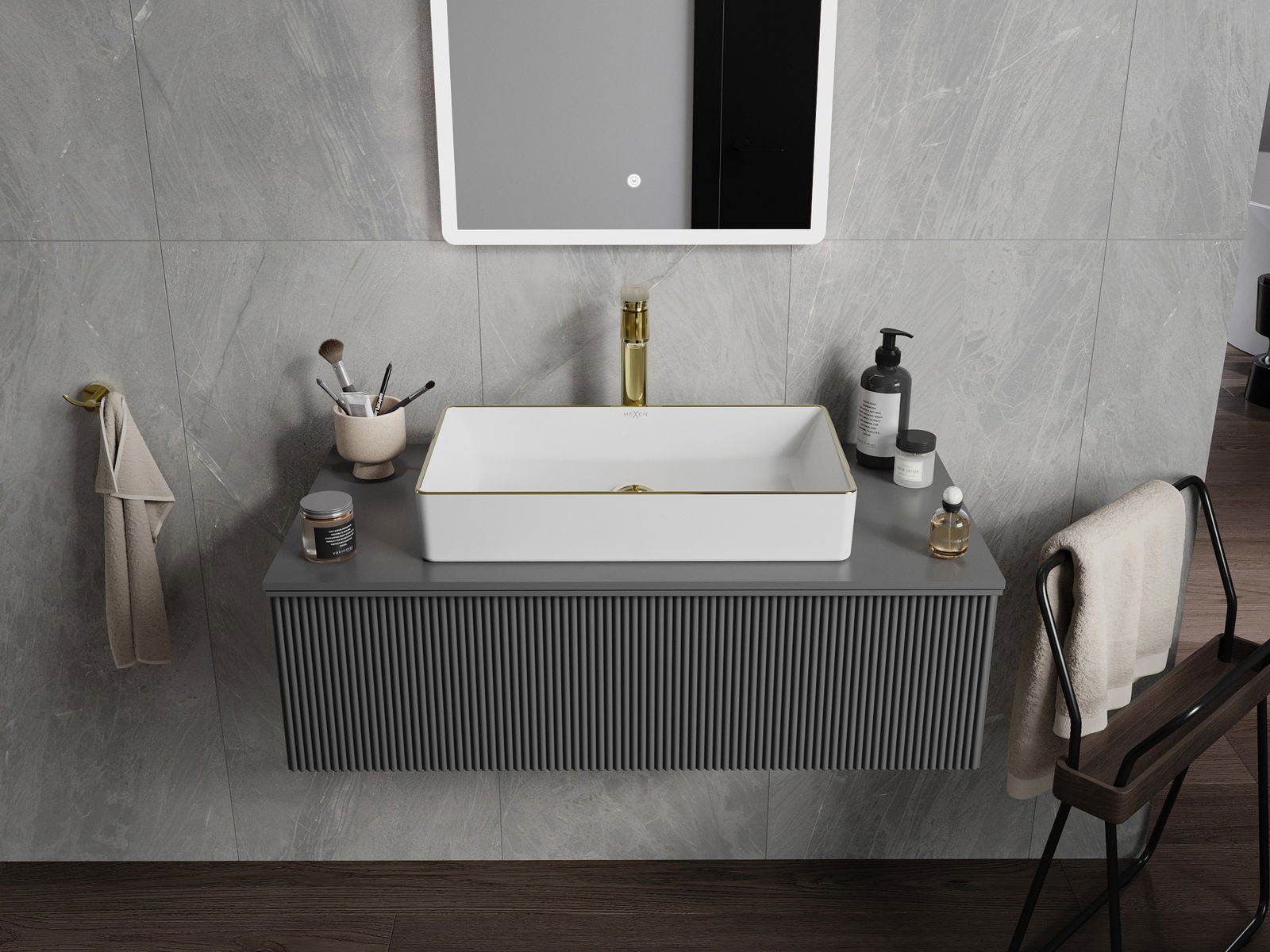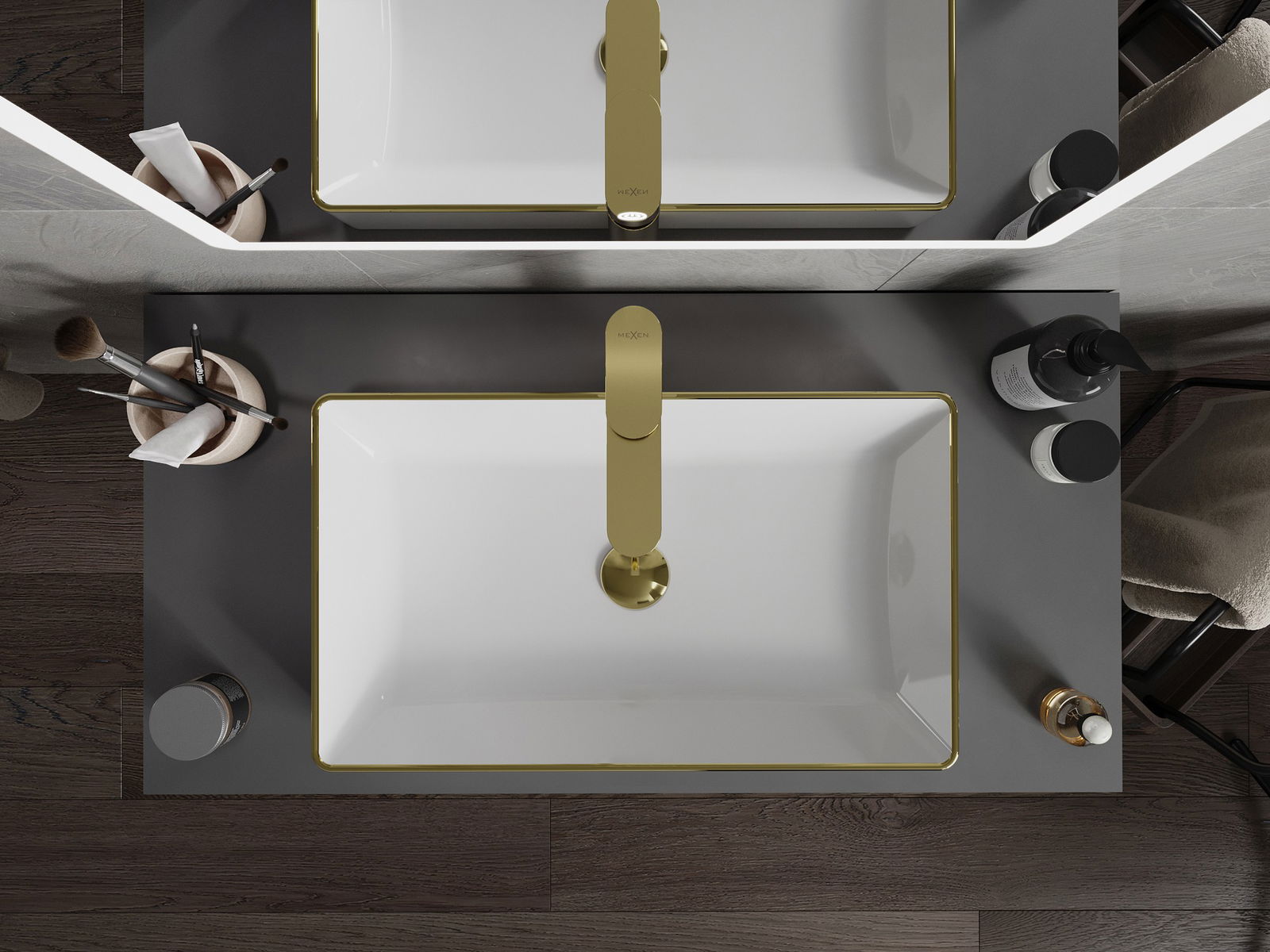 Mexen Nadia umyvadlo na desku 62 x 35 cm, bílá/zlatý okraj - 21616005