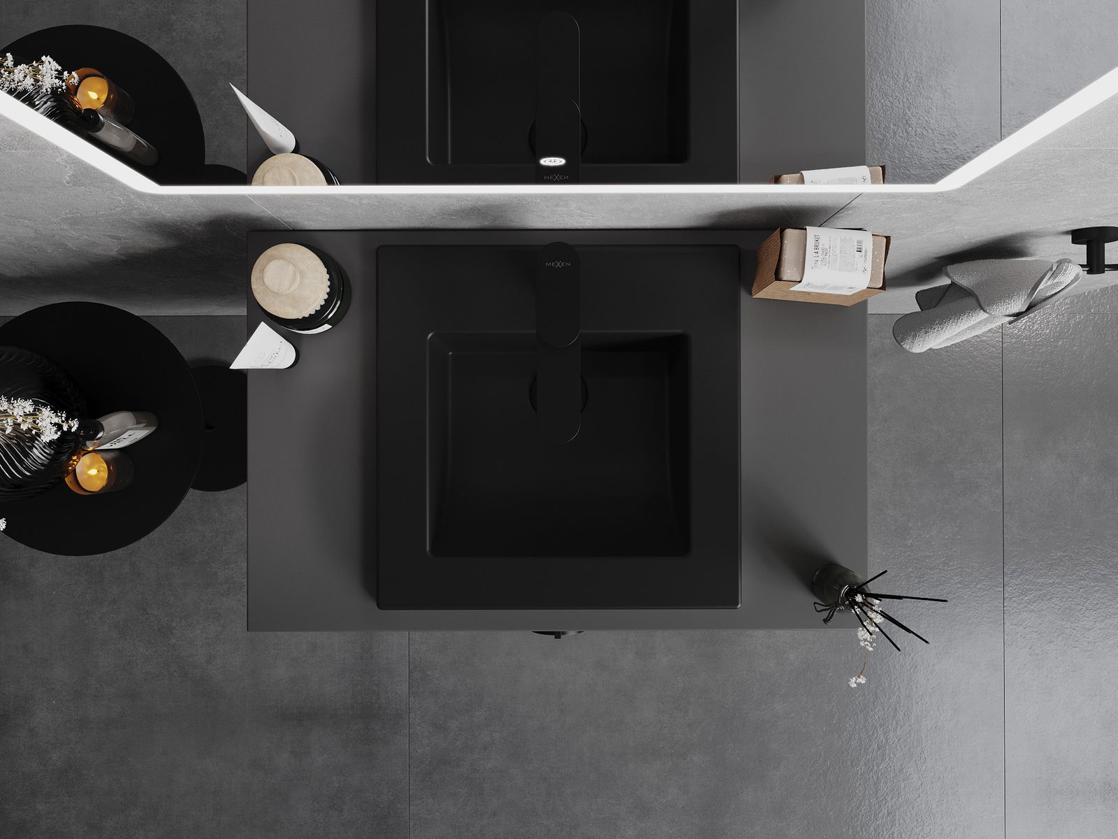 Umyvadlo má otvor, ve kterém lze namontovat baterii. Umožňuje to ušetřit cenný prostor v koupelně a zvýraznit její estetiku. Toto řešení také usnadňuje udržování čistoty kolem umyvadla.