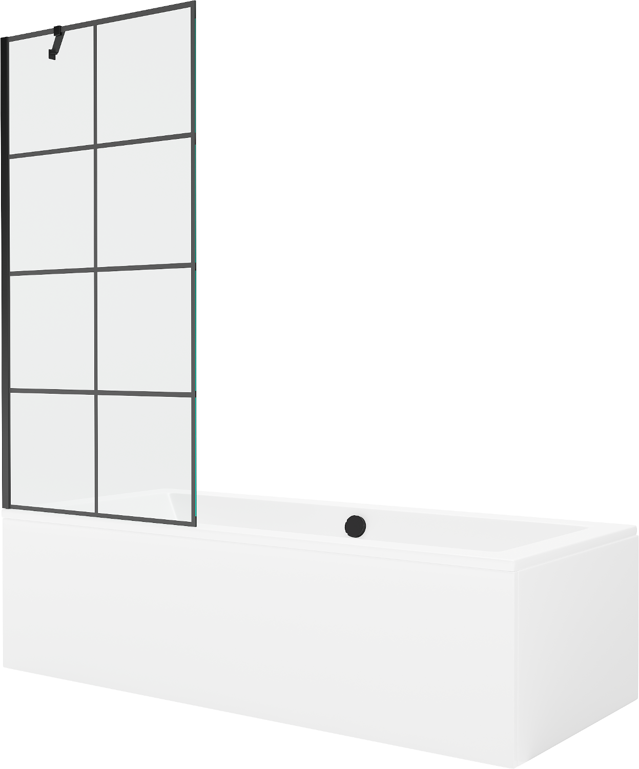 Mexen Cube obdélníková vana 170 x 80 cm s krytem a jednokřídlou zástěnou 80 cm, černý vzor - 550517080X9508007077