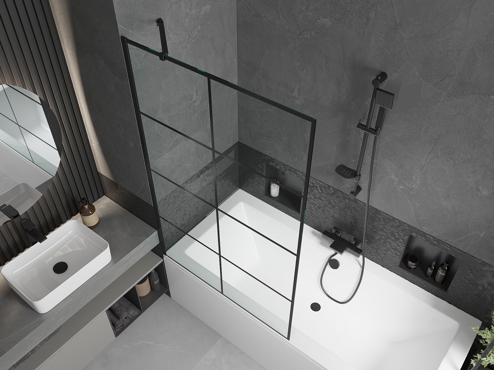 Účinná ochrana před rozléváním vody během koupání. Paraván má těsnění, která se ideálně přizpůsobují skleněné desce a okraji vany. Funkční řešení zajišťující bezpečnost a snadnou údržbu čistoty.