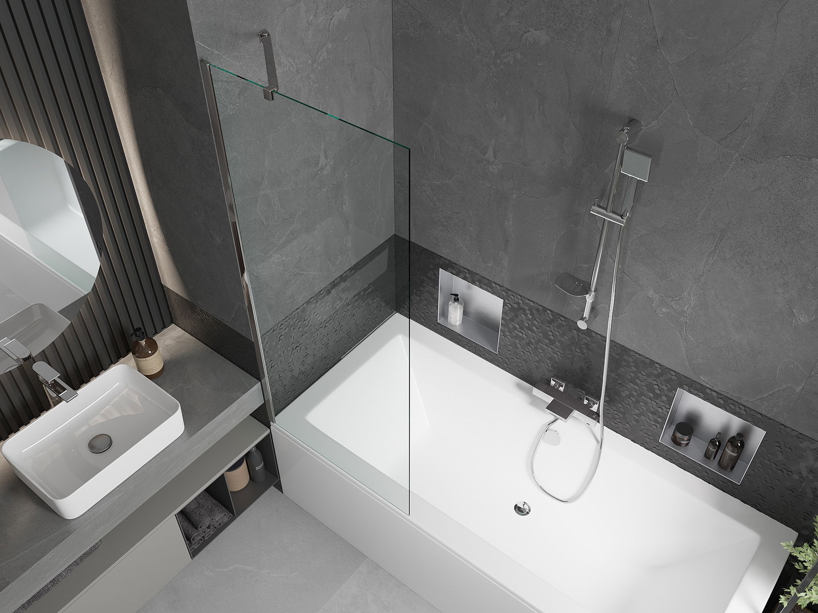 Účinná ochrana před rozléváním vody během koupání. Paraván má těsnění, která se ideálně přizpůsobují skleněné desce a okraji vany. Funkční řešení zajišťující bezpečnost a snadnou údržbu čistoty.