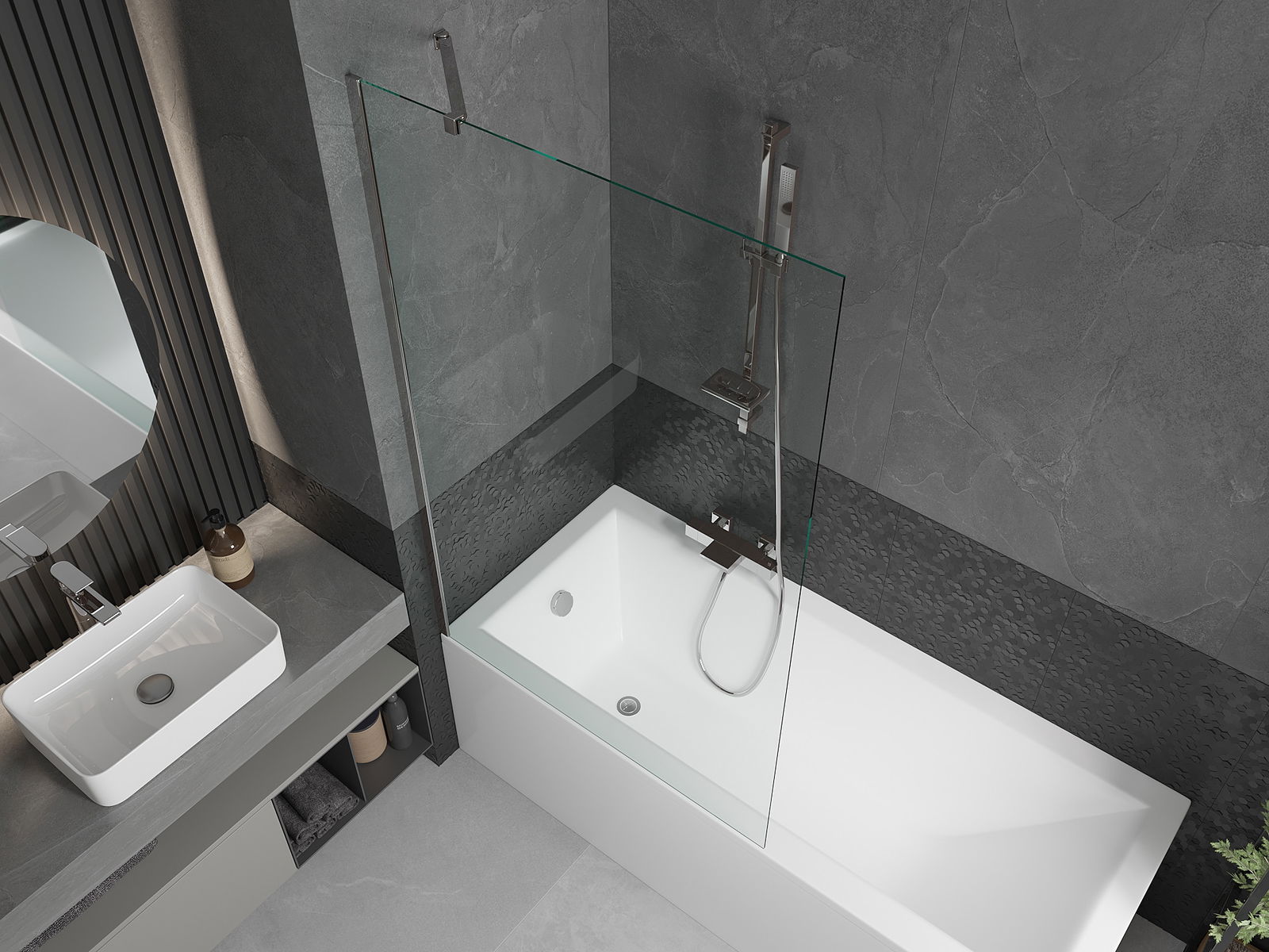 Mexen Cubik obdélníková vana 150 x 70 cm s obložením a jednokřídlou zástěnou 100 cm, transparentní, chrom