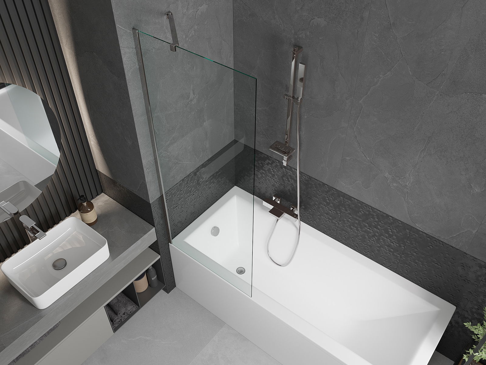 Účinná ochrana před rozléváním vody během koupání. Paraván má těsnění, která se ideálně přizpůsobují skleněné desce a okraji vany. Funkční řešení zajišťující bezpečnost a snadnou údržbu čistoty.