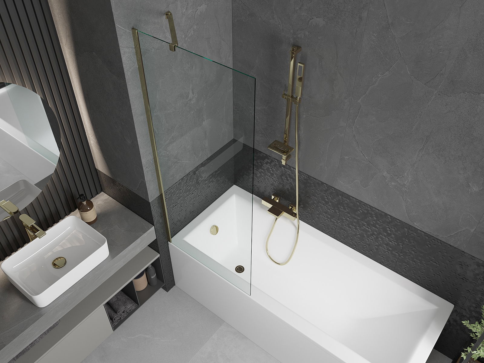 Mexen Cubik obdélníková vana 160 x 70 cm s obložením a 1dílnou zástěnou 70 cm, transparentní, zlatá - 550316070X9507000050