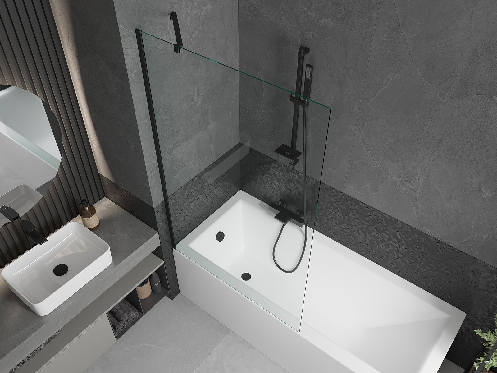 Mexen Cubik obdélníková vana 160 x 70 cm s obložením a jednokřídlou zástěnou 100 cm, průhledná, černá - 550316070X9510000070