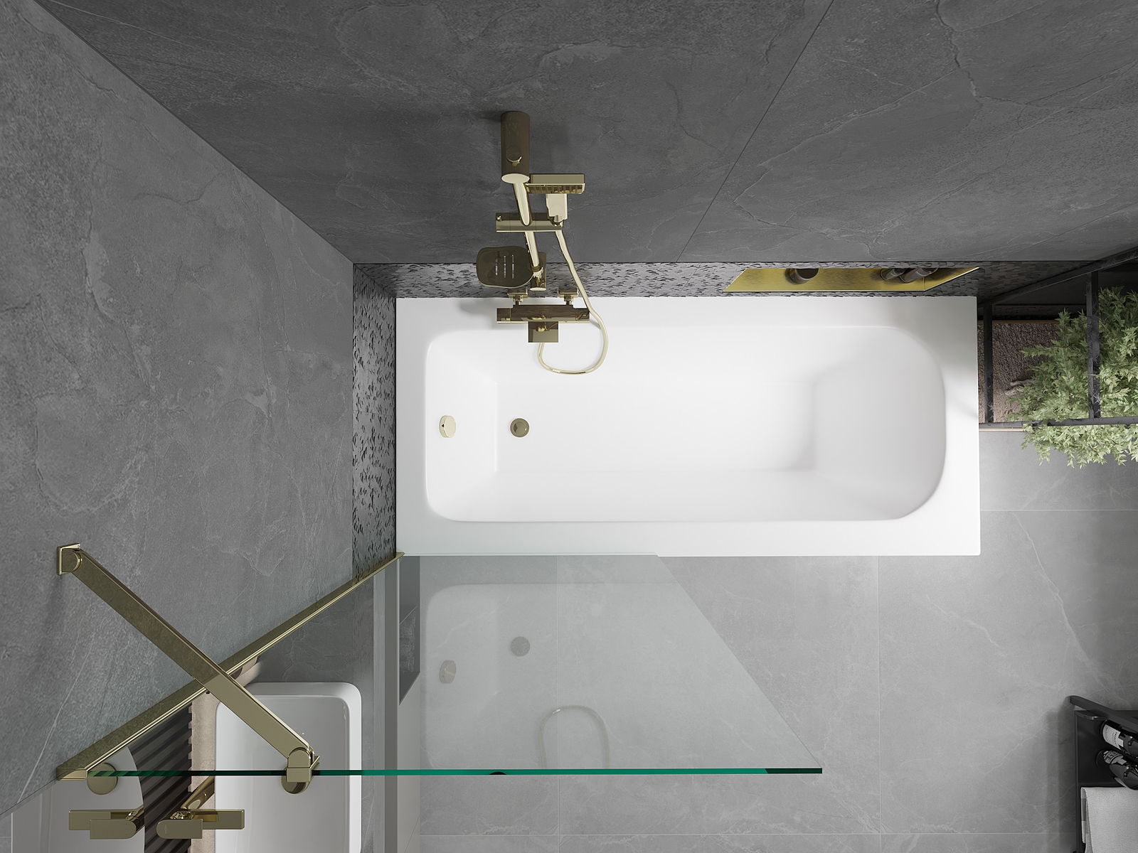 Mexen Vega obdélníková vana 150 x 70 cm s obložením a 1-křídlovou zástěnou 80 cm, transparentní, zlatá - 550115070X9508000050