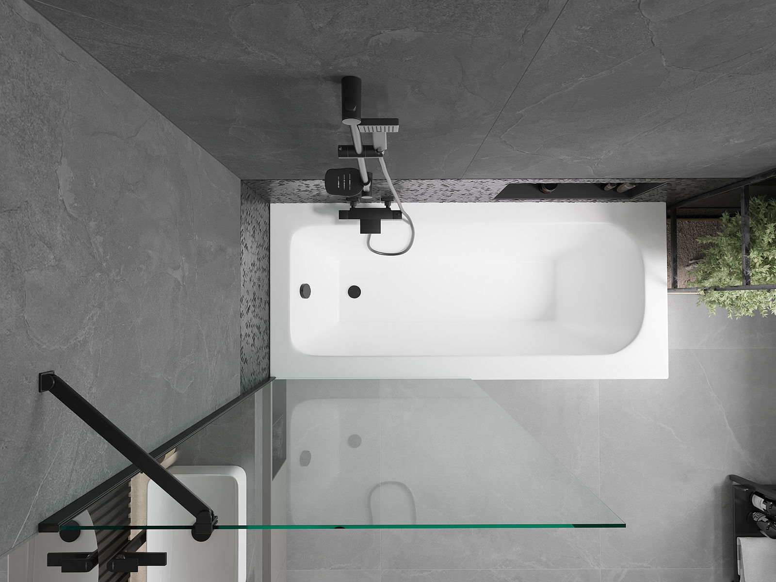 Mexen Vega obdélníková vana 160 x 70 cm s krytem a 1-křídlovou zástěnou 90 cm, transparentní, černá - 550116070X9509000070