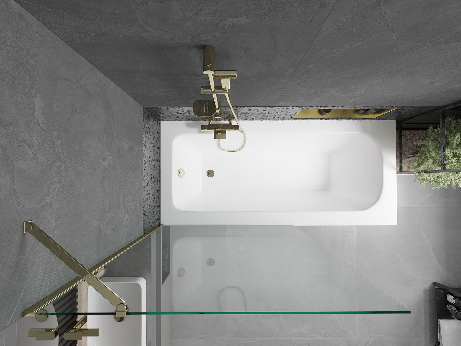 Mexen Vega obdélníková vana 170 x 70 cm s obložením a jednokřídlým závěsem 100 cm, transparentní, zlatá - 550117070X9510000050