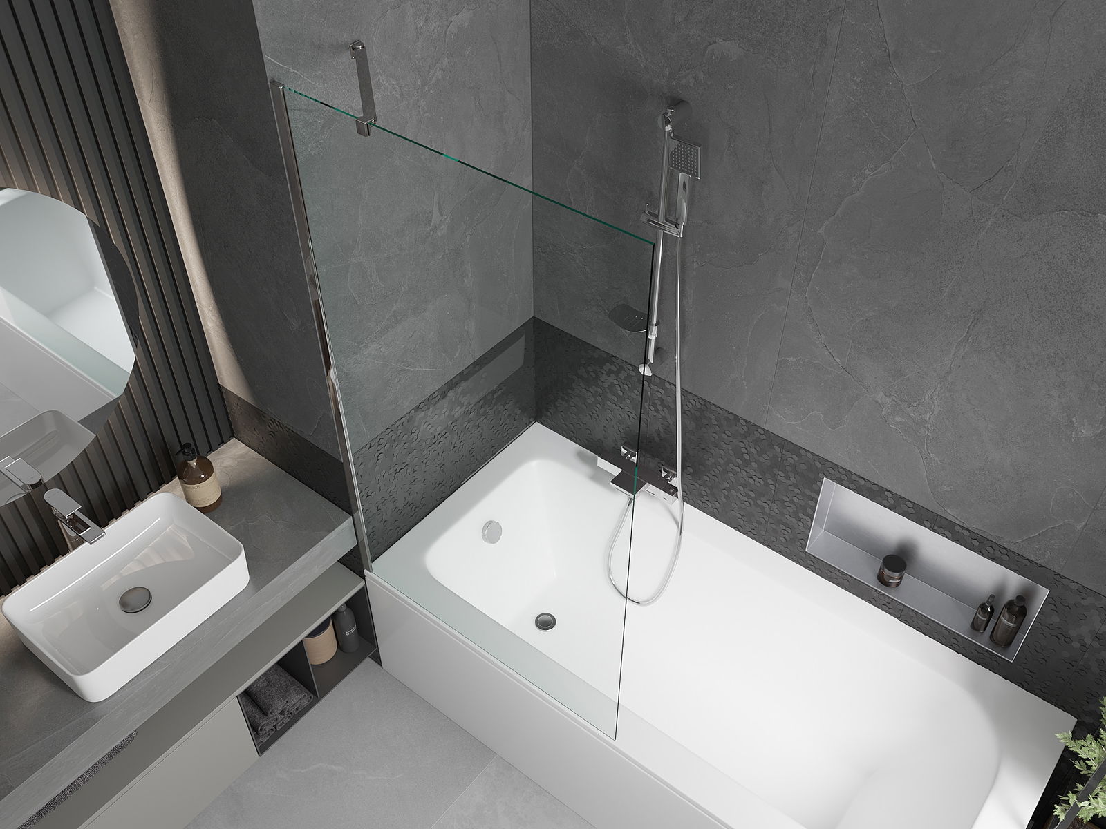 Účinná ochrana před rozléváním vody během koupání. Paraván má těsnění, která se ideálně přizpůsobují skleněné desce a okraji vany. Funkční řešení zajišťující bezpečnost a snadnou údržbu čistoty.