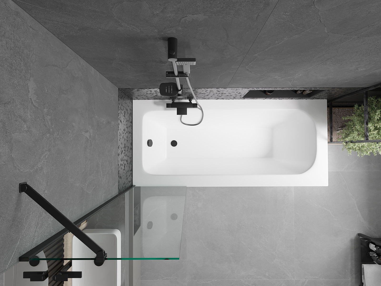 Mexen Vega obdélníková vana 180 x 80 cm s krytem a 1-křídlovou zástěnou 50 cm, transparentní, černá