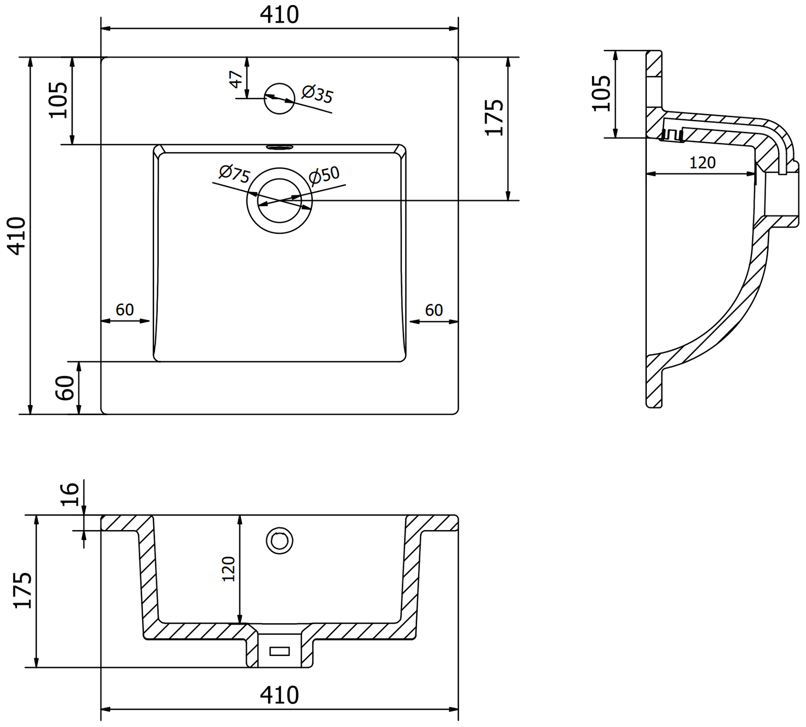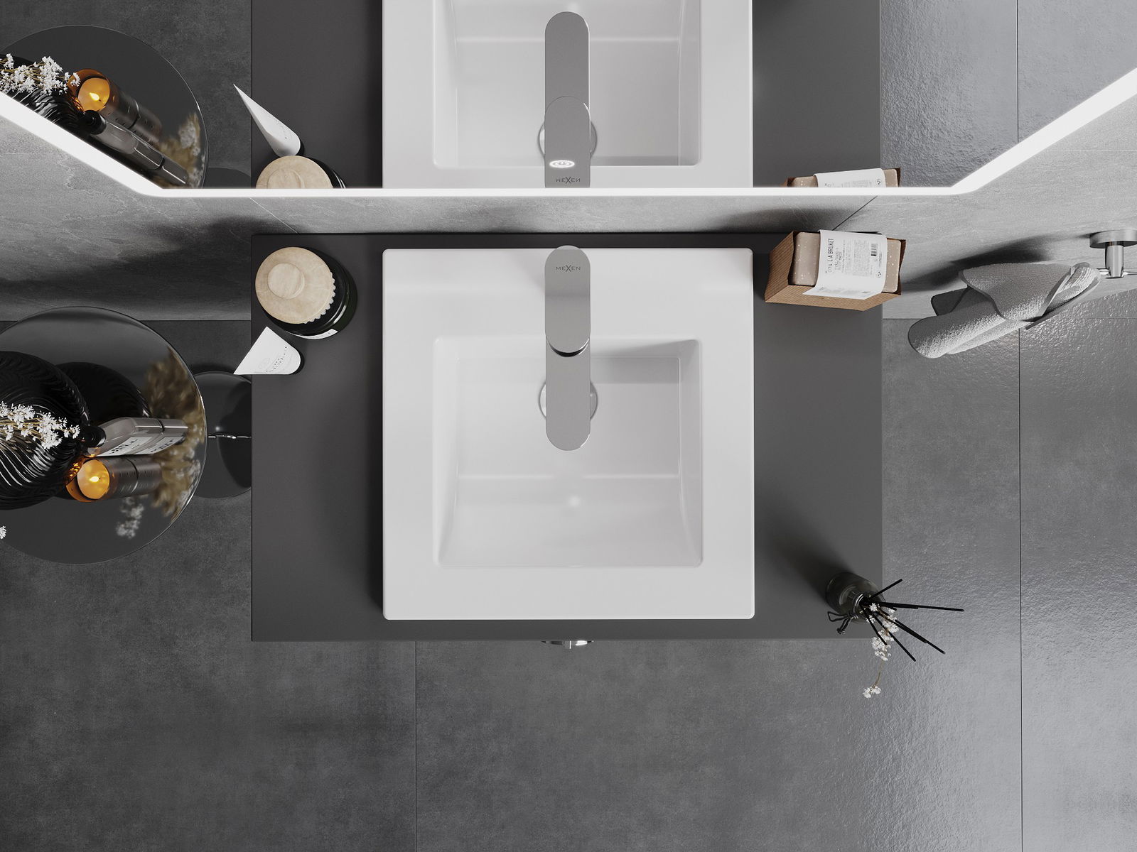 Umyvadlo má otvor, ve kterém lze namontovat baterii. Umožňuje to ušetřit cenný prostor v koupelně a zvýraznit její estetiku. Toto řešení také usnadňuje udržování čistoty kolem umyvadla.