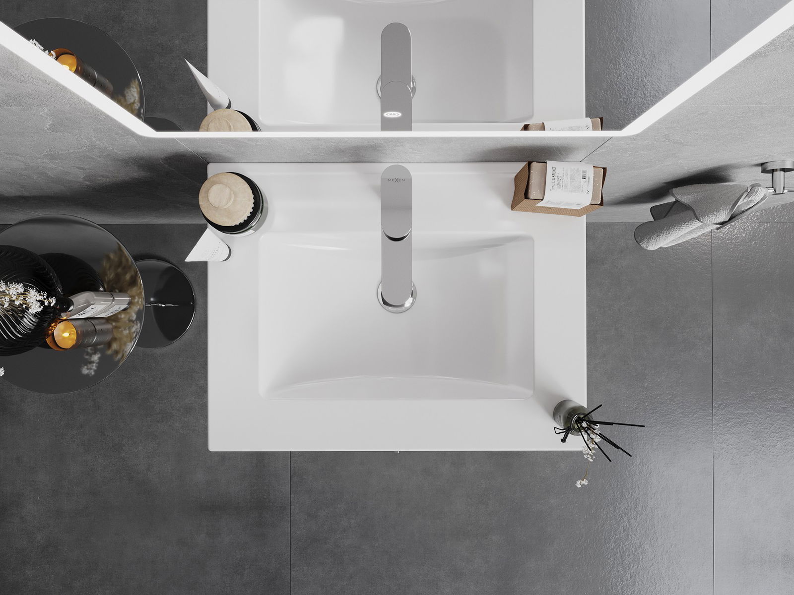 Umyvadlo má otvor, ve kterém lze namontovat baterii. Umožňuje to ušetřit cenný prostor v koupelně a zvýraznit její estetiku. Toto řešení také usnadňuje udržování čistoty kolem umyvadla.