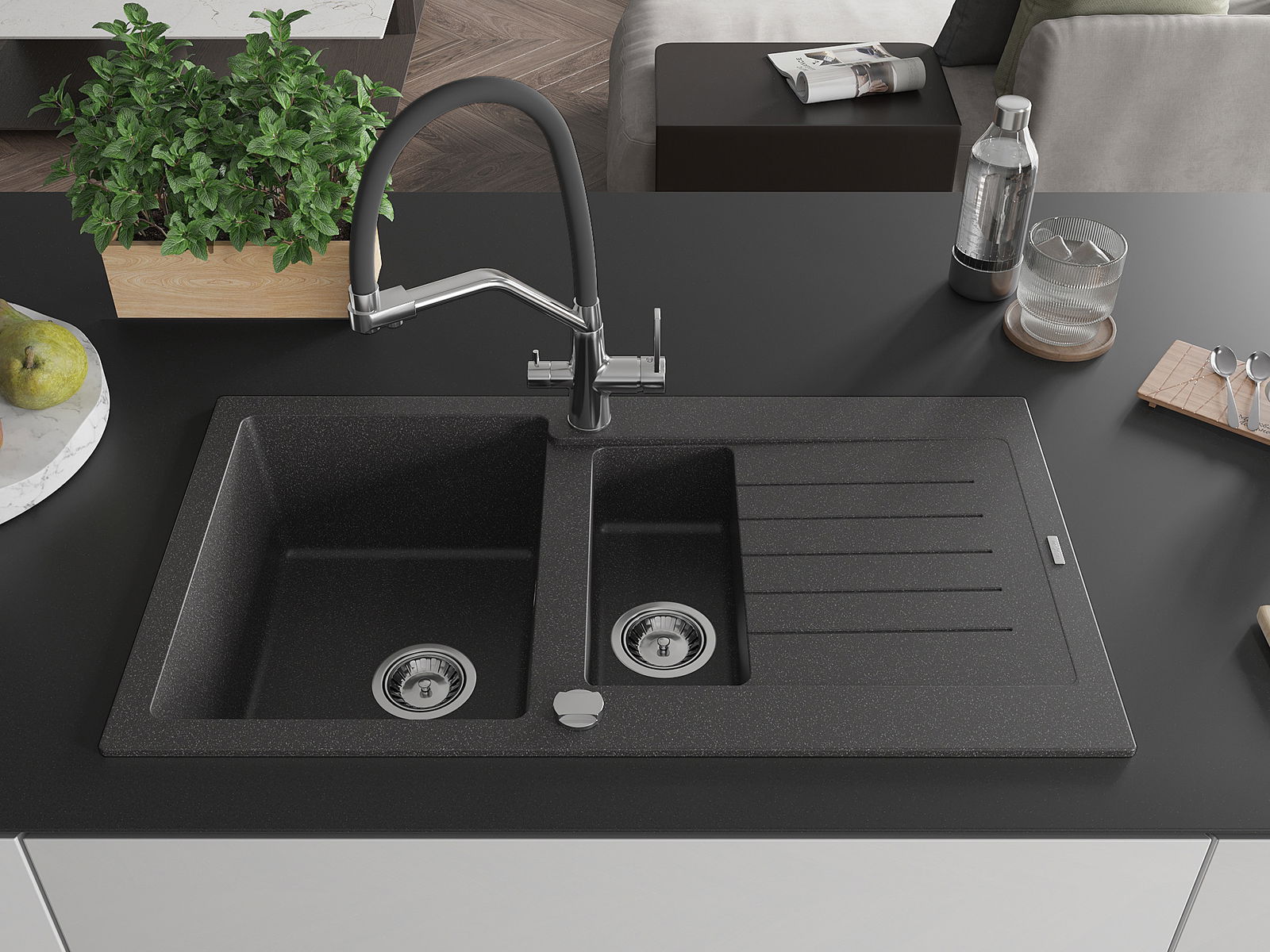 Dřez byl vyroben z vysoce kvalitního granitu. Představuje elegantní a především praktický doplněk každé kuchyně, bez ohledu na její styl. Vysoká kvalita a trvanlivost granitu zajišťují dlouholeté používání.