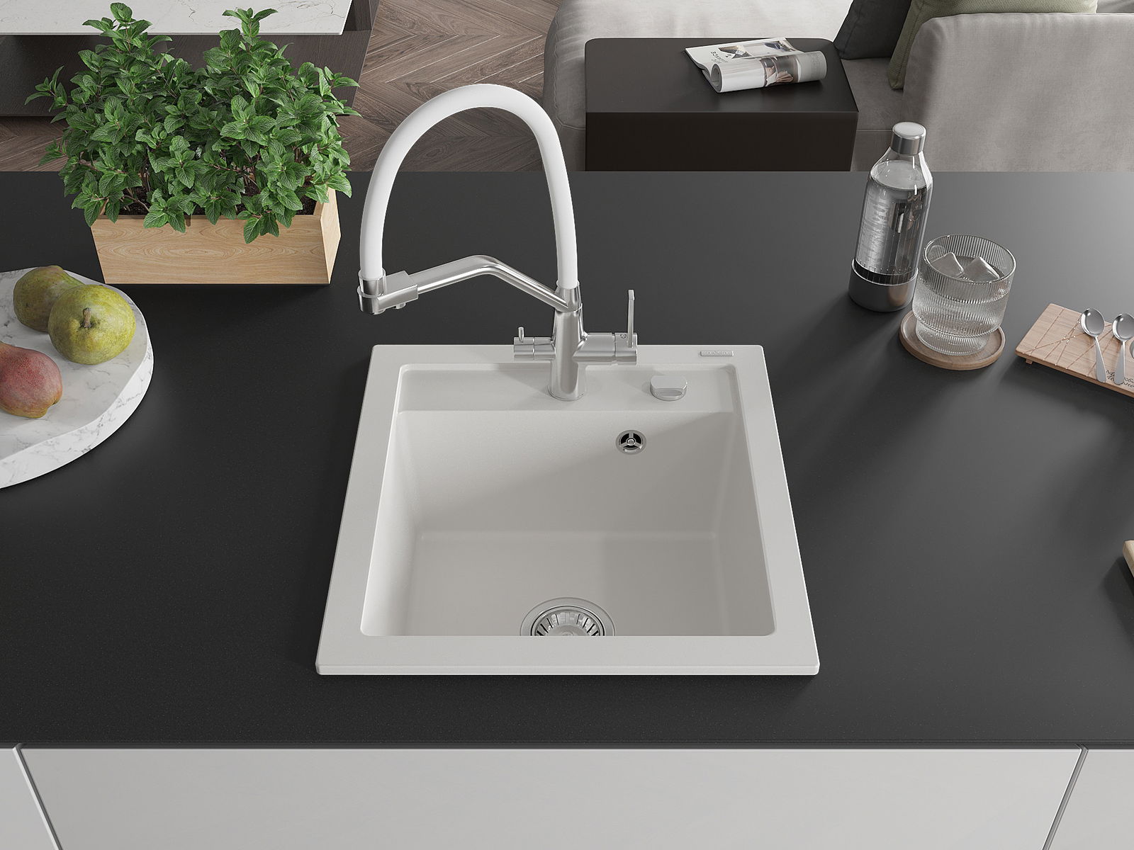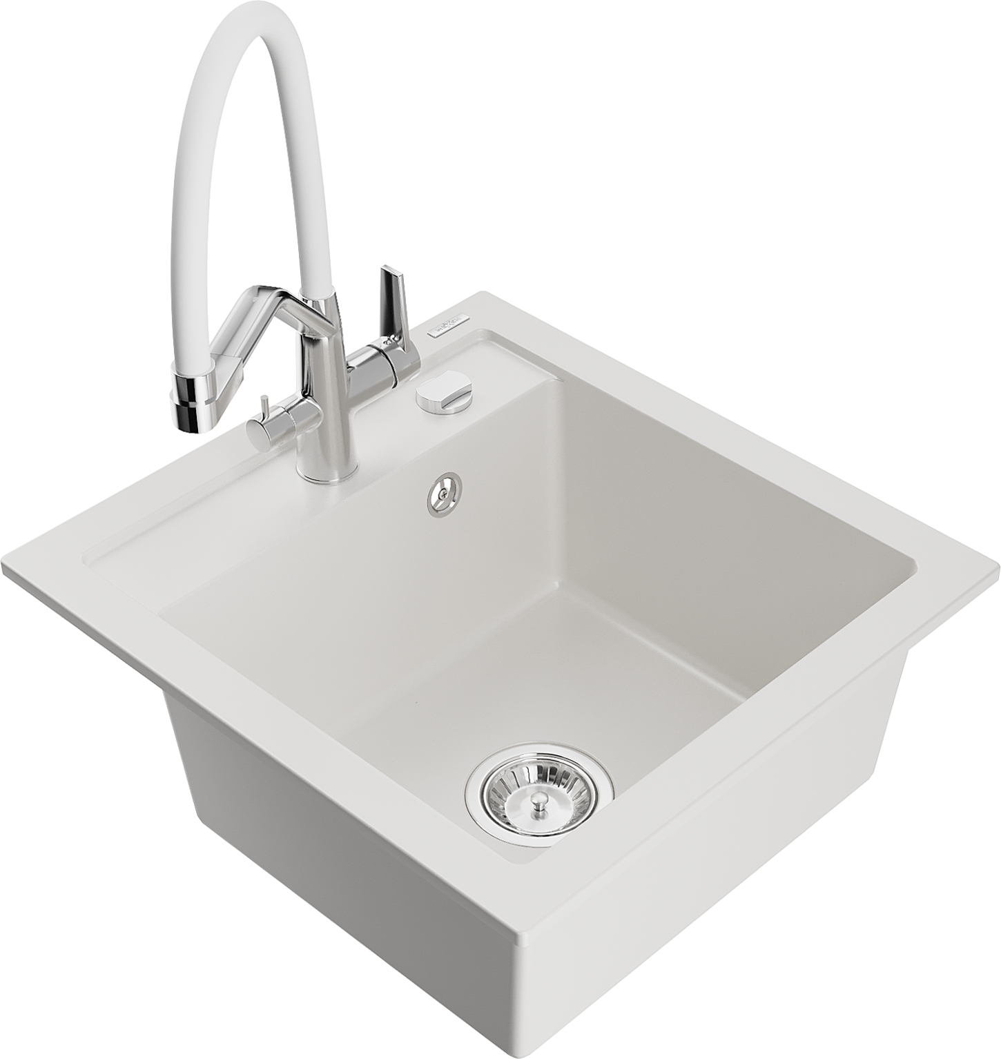 Mexen Vito granitový dřez s 1 komorou a kuchyňskou baterií Duo, bílý - 6503-20-671701-02