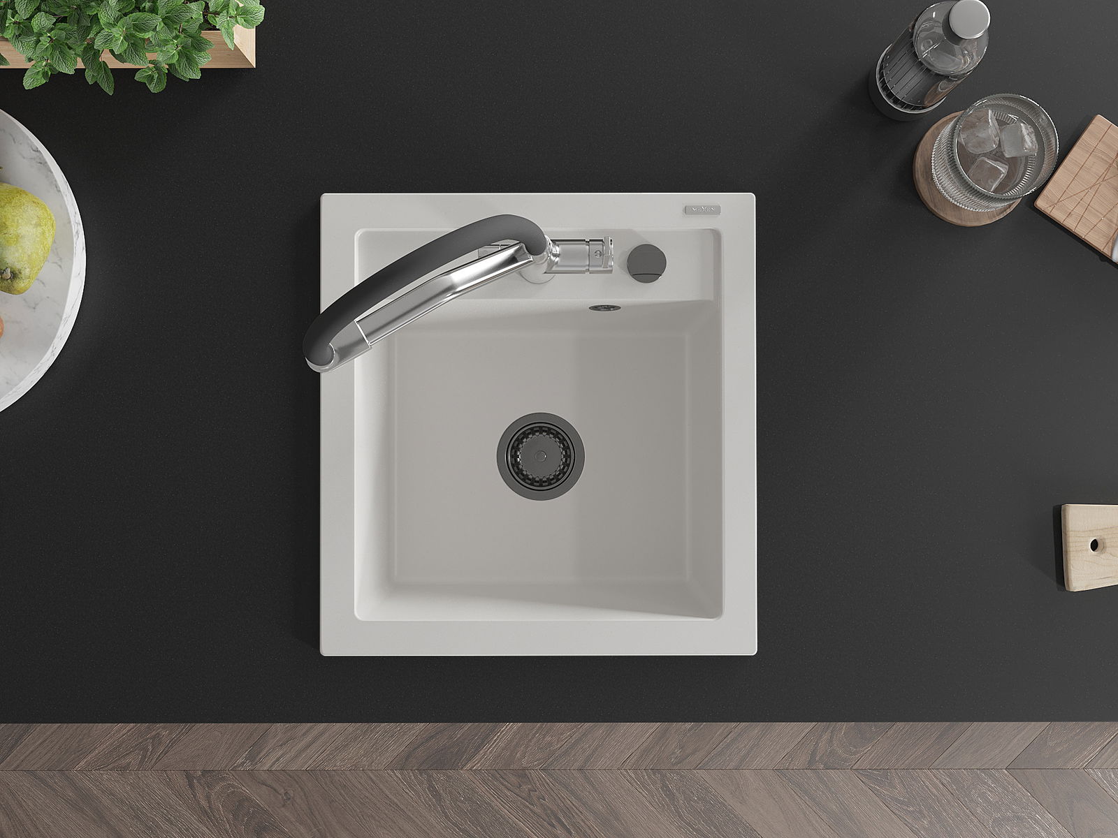 Povrch dřezu je odolný proti skvrnám a zabarvení, což usnadňuje jeho čištění a zachovává jeho barvu po dlouhou dobu používání. Estetický a praktický doplněk každé kuchyně.