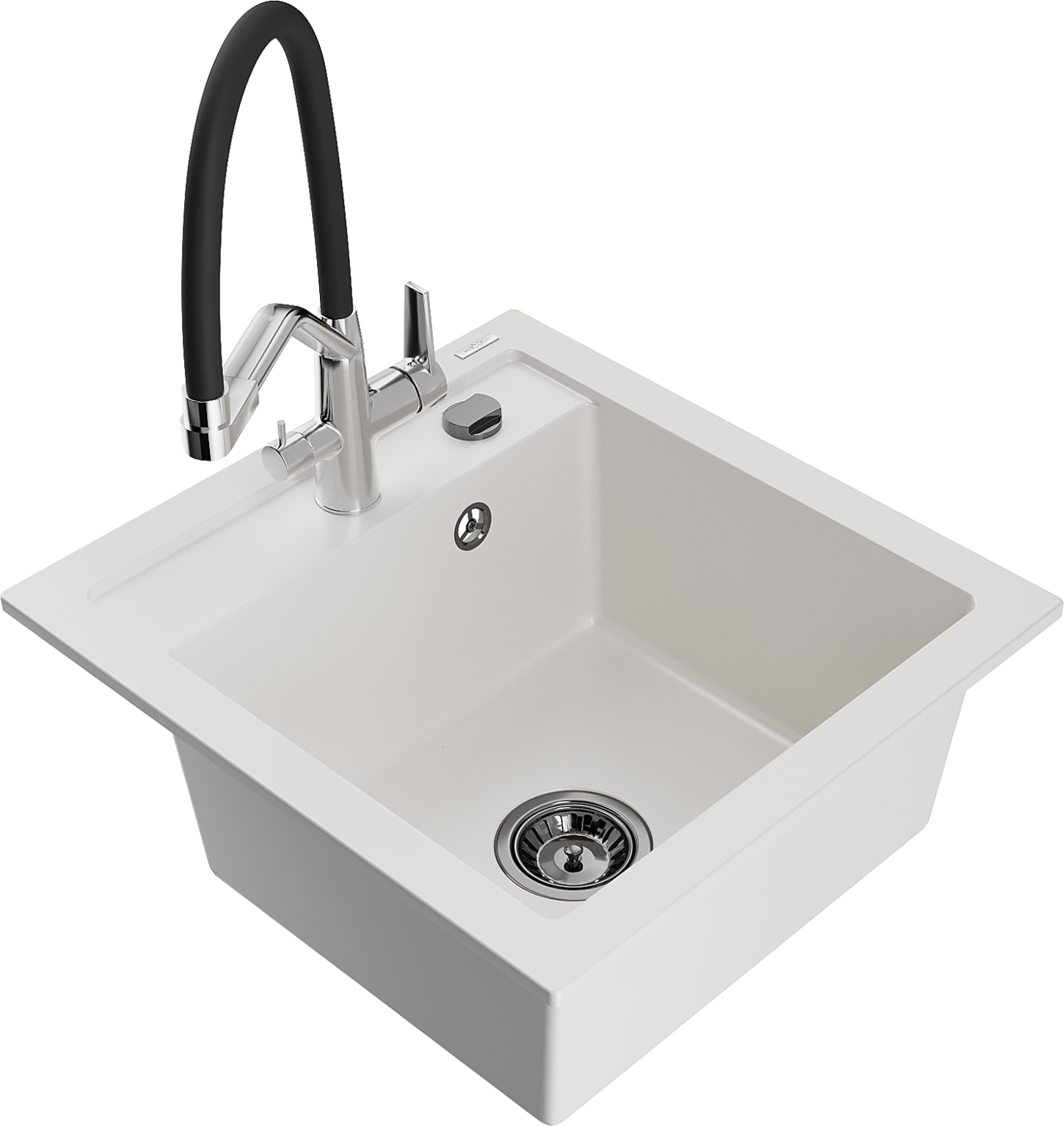 Mexen Vito granitový dřez s 1 komorou a kuchyňskou baterií Duo, bílý - 6503-20-671701-07-B